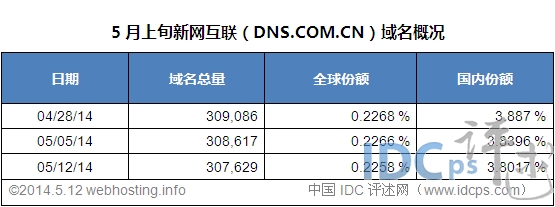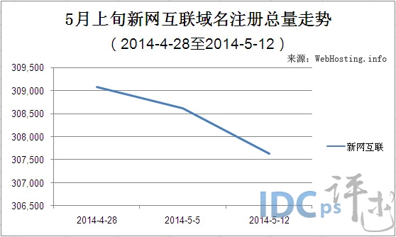 5月上旬,新网互联域名净减1,457个,国内市场份额下滑至3.8017%