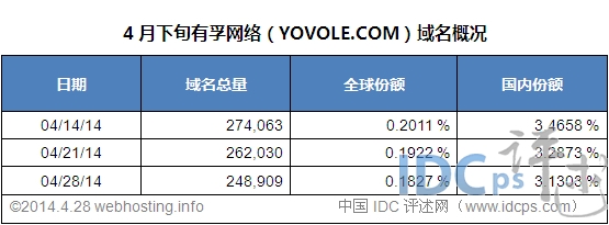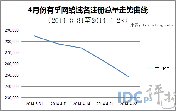 4月下旬,有孚网络域名净减25,154个,国内市场份额下降至3.1303%