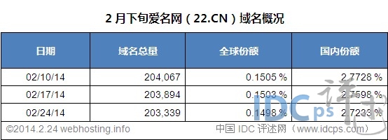 爱名网域名2月下旬净减728个,国内市场份额降至2.7238%