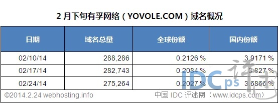 域名注册量动态:有孚网络2月下旬净减1.3万