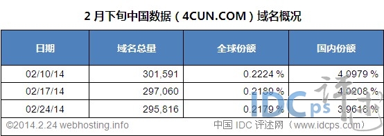 中国数据域名2月下旬注册量动态:净减5775个 重庆域名(www.023dns.com)消息, 根据域名统计机构WebHosting.info数据,截至2014年2月24日,中国数据域名相比2月上旬净减5,775个域名,国内市场份额跌破4%,至3.9618%,总量为295,816个,。下面,重庆域名(www.023dns.com)与大家一起关注2月下旬中国数据域名增长情况。 2月份中国数据域名注册量走势,如下图所示: 从上图中我们可以看出,根据域名走势曲线分析,中国数据域名跌破29.6万。中国数据域名2月份呈现出负增长的状态,并且降幅颇大。在2月下旬(2月10日-2月24日)期间,中国数据域名增势并不乐观,域名呈现负增长态势,并且降幅颇大。 中国数据域名增长数据,如下图所示: 从图中我们能够看出,在2月下旬期间,中国数据域名增量呈现出下滑的趋势,域名净减5,775个域名,总量从301,591个下降至295,816。在全球域名市场上,份额下滑。在国内,域名市场份额也呈现出下降的趋势。 综合以上最新数据,中国数据域名2月下旬净减5,775个,国内市场份额下滑至3.9618%。 |