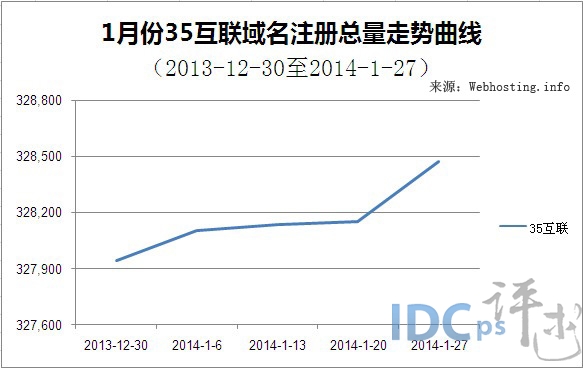 1月下旬35互联域名注册量动态:净增336个 重庆域名(www.023dns.com)消息, 据WebHosting.info数据,截至2014年1月27日,35互联域名相比1月上旬净增336个域名,但国内市场份额仍下滑至4.4582%,总量增长至328,474个。下面,重庆域名(www.023dns.com)与大家一起关注1月下旬35互联域名增长情况。 1月份35互联域名注册量走势,如下图所示: 从上图中我们能够知道,根据域名走势曲线分析,35互联域名总量即将突破32.8万个。1月份,35互联域名增势非常的良好,但增长并不平稳。在1月下旬(1月13日-1月27日)期间,35互联域名增势最为的良好,增幅明显比之上旬要明显。 35互联域名增长数据,如下图所示: 从图中我们能够看出,在1月下旬期间,35互联域名增量呈上升趋势,域名净增336个域名,总量从328,138个增长至328,474个。在全球域名市场上,份额没有太大的变化,相对平稳。但在国内,市场份额则呈现出下滑的趋势。 综合以上最新数据,35互联域名1月下旬净增336个,国内市场份额下降至4.4582%。 |