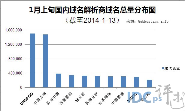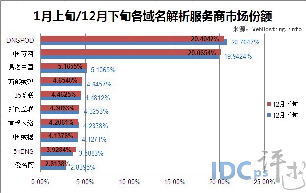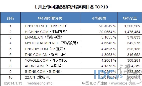国内域名解析服务商1月上旬Top10榜单