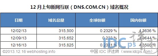 12月上旬新网互联域名注册量动态:净增325个