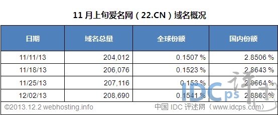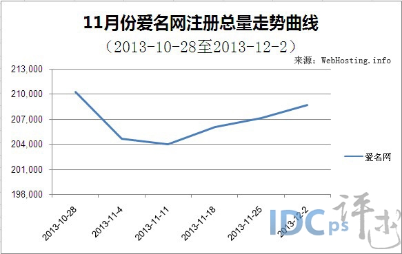爱名网11月下旬域名注册量动态:净增4678个域名