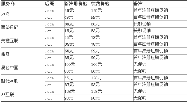 面对2013年末域名价格战:国内域名注册选哪家? 重庆域名(www.023dns.com)消息, 最近,各种促销活动在互联网上满天飞,在刚刚过去的双十一当天,淘宝天猫更是突破了300亿元交易的新纪录,让业内人士大呼过瘾。在众多的互联网促销活动中,有一个相对比较小但又必不可少的圈子,也在进行着火热的价格之战,大有闪瞎广大站长眼球之势!让我们把视线转到这个圈子去看个究竟。 在新浪微博上,一位大V发微博咨询,计划注册一个.COM域名做个人网站,想了解一下目前的域名注册价格,并希望大家推荐一家靠谱的域名注册服务商。我们统计了一下评论,在百余条评论中,推荐域名服务商新网12次,推荐西部数码28次、推荐万网32次,其他域名服务商总共将近20次。在域名注册价格上面相差也是比较大,西部数码注册.COM域名只要39元,价格优惠力度最大。为此,我们打算实地去验证一下这些评论信息的真实性。 在专业导购评测平台IDC评述网http://www.idcps.com/idc/china/domain页面,列出了国内目前排名前十的域名注册服务商,详细调查统计了几家知名域名服务商的注册及续费价格,具体如下所示: 从上图表中,对比各大域名服务商域名注册价格不难看出:,.CN域名,则是西部数码、美橙互联、时代互联和新网的价格优势比较明显,分别是19元、35元、37元和39元;另外,西部数码、万网和美橙互联的.COM域名价格优势都比较清楚,分别是39元、49元和55元。 从续费价格来看:西部数码与美橙互联的优势比较突出,比最高价格便宜70余元! 根据我们的了解,一般.COM域名注册价格都在65元左右。西部数码却提供低至39元的注册价格,难道是赔本赚吆喝?为此,我们致电西部数码市场负责人了解详情,得到的答复如下:目前,针对新用户的特价优惠,.COM域名的注册价格39元,主要是为了庆祝公司十一周年;续费68元则是长期优惠。与此同时,如果将域名从其他注册服务商转入西部数码,将享受48元的优惠! 原来如此!我们有理由相信,这一切优惠的来源,很大一个因素其实都是市场竞争的结果。 又是一年结束的时候了,相信各个IDC行业内的各企业在接下来的几个月内,为赢得更多的市场份额,将有更多的促销信息发布。各位站长又有福啦,记得一定要有分享精神,一定要向周围的朋友分享这些优惠信息哟。 |
