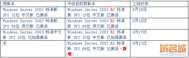 万网关于windows server 2003镜像版本升级的公告