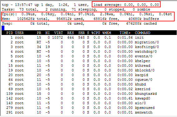 1、 ssh远程登录到服务器,通过命令top查看系统内部是否有高负载消耗资源的现象,如下图: