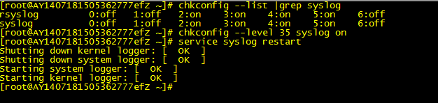 1. chkconfig --list |grep syslog 查看服务是否随系统启动,如果是off的请设置为on;