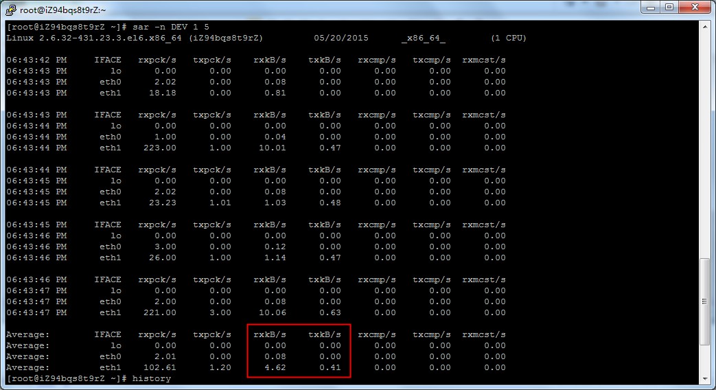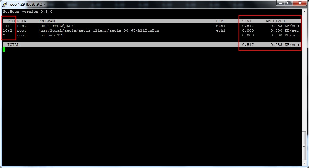 在云监控中若查看到带宽已达到上限,导致系统远程卡顿、ping值延迟大等故障时。可以通过SSH远程登陆或者管理终端登陆服务器进行问题分析。 1、首先需确定是哪一张网卡的带宽跑满,可通过sar -n DEV 1 5 命令来获取网卡级别的流量图,命令中1 5表示每一秒钟取1次值,共取5次。命令执行后会列出每个网卡这五次取值的平均数据,根据实际情况来确定带宽跑满的网卡名称,默认情况下eth0为内网网卡,eth1为外网网卡。 2、通过nethogs工具来查看某一网卡上进程级流量信息,若没有安装可以通过yum、apt-get等方式安装。假定当前eth1网卡跑满,则执行命令nethogs eth1,在右边的红框中可以看到每个进程的网络带宽情况,左边红框显示了进程对应的PID,在此可以确定到底是什么进程占用了系统的带宽。 3、如确定是恶意程序,可以通过“kill -TERM PID号”来终止程序;如果是web服务程序,则可使用iftop等工具来查询具体IP来源,然后分析web访问日志是否为正常流量,日志分析也可使用awstats或者logwatch等工具进行分析,那么就确定是正常的流量,则可考虑升级服务器的带宽。 上一条: 云监控磁盘IO监控无数据的分析解决 下一条: 简单APACHE日志分析的具体操作