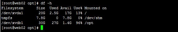 ECS Linux服务器,使用df -h查看文件系统的使用率,可看到/dev/xvdb1磁盘容量占用了约27G,挂载目录为/opt。 但是进入到opt目录中执行:du -sh ,显示空间总占用量约2.4G,也就是说df 和du查看到的结果是不一致的。 原因分析: df - report file system disk space usage df命令使用statfs这个系统调用,直接读取分区的超级块信息获取分区使用情况。它的数据基于分区元数据,只能针对整个分区。 du - estimate file space usage du命令会对统计文件逐个调用fstat这个系统调用,获取文件大小。它的数据是基于文件获取,可跨多个分区操作。 导致这个两个命令查看磁盘容量不一致的原因是用户删除了大量的文件,在文件系统目录中已不可见,因此du就不会再统计它。然而若此时还有运行的进程持有这个已被删除的文件句柄,那么这个文件就不会真正在磁盘中被删除,分区超级块中的信息也就不会更改,df仍会统计这个被删除的文件。 可通过 lsof命令查询处于deleted状态的文件,被删除的文件在系统中被标记为deleted。如果系统有大量deleted状态的文件,会导致du和df统计结果不一致。 #lsof |grep deleted //在opt目录下执行lsof |grep deleted 解决方法: 1、根据lsof列出的pid直接kill相应进程。示例: #kill -9 692 请注意:若服务器正在运行业务,kill 会导致进程直接终止,还有可能会影响到业务,需要您慎重操作。 2、重启服务器。 重启服务器系统会退出现有的进程,开机后重新加载,该过程会释放调用的deleted文件的句柄。
