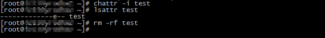 若希望某一个文件不被修改,可通过执行chattr +i 文件名称对这个文件进行保护,不能进行修改,若需修改需要先去掉此保护,执行chattr -i 文件名称就能够去掉保护。 首先执行touch test创建一个空文件test,之后执行lsattr test 查看是否存在保护 若显示----i--------e-- test 说明存在保护 若显示-------------e-- test 说明没有保护 这时执行chattr +i test对文件进行保护,再执行lsattr test,确认已存在保护,执行删除命令 rm -rf test 出现拒绝操作的提示,说明保护成功,不允许删除。 执行chattr -i test取消保护,再执行lsattr test 查看已经取消保护,执行rm -rf test 将test文件成功删除。 chattr命令也可以对目录进行保护,但是无法保护/、/dev、/tmp、/var目录 下一条: Linux服务器查看网关信息的几种方法