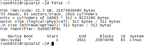 1、进入或者切换目录; cd --例如进入到根 的 home目录下,命令是 cd /home 2、创建目录; mkdir /alidata 意思在根下创建了 alidata的目录; 3、查看当前挂载磁盘使用情况; df -h 就可以显示当前挂载的磁盘的使用情况,下图中说明系统盘/dev/xvda1 已使用8%的空间; 4、fdisk -l 可以查看当前您的服务器上存在几个可用的磁盘;当前显示只有一个系统盘。如果还有其他的磁盘,会显示为 /dev/xvdb 、以此类推。