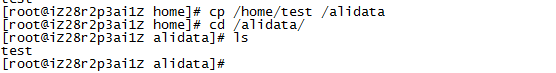 5、拷贝数据,从一个目录下拷贝到另外目录下,例如把/home下的test文件拷贝到/alidata 下; cp /home/test /alidata