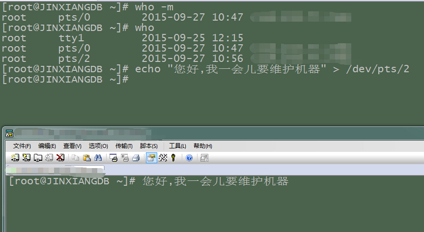 /dev/pts/x 对方使用的tty可由who 或who -m命令确定,具体方法如下所示: