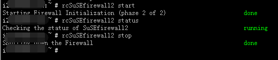 suse与其它版本linux系统的防火墙操作不同 ,常用的操作方法如下所示: 启动防火墙 rcSuSEfirewall2 start 停止防火墙 rcSuSEfirewall2 stop 查看防火墙状态 rcSuSEfirewall2 status 默认suse防火墙策略是拒绝的,建议先添加策略后再启动防火墙,suse可以通过命令添加,命令与其它版本的linux系统一样。 此处介绍的是在配置文件/etc/sysconfig/SuSEfirewall2 中的添加方法 UDP端口在FW_SERVICES_EXT_UDP=""中添加 TCP端口在FW_SERVICES_EXT_TCP=""中添加 可添加端口,端口范围,程序名称,如“22 21” “ssh ftp” “21:22” 之后执行rcSuSEfirewall2 restart 重启后生效 查看防火墙规则已生效