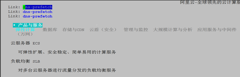Linux主机默认不安装桌面程序,因此若需在linux主机上测试网站是否可以打开。 一般情况下有两种方式,如下所示: 1、下载elinks命令通过elinks打开站点 centos、redhat系列 yum install elinks -y ubuntu系列可以使用 sudo apt-get install elinks -y 打开方式elinks wwwa.liyun.com 显示情况如下 请注意:elinks打开网站,q退出 2、通过curl命令测试网站的域名。类似如下命令查看返回的状态码是否是200 [root@iZ285ma471jZ ~]# curl -I www.aliyun.com