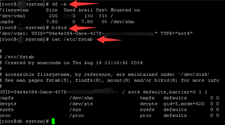 若您使用auto_fdisk.sh脚本进行检测是不是有尚未分区的数据盘、格式化新的数据盘并自动挂载的操作时,遇到以下报错 Step 1.No lock file,begin to create lock file and continue. Step 2.Begin to check free disk. No free disk need to be fdisk.Exit script. 出现以上报错很有可能是因为数据盘是SSD云盘。auto_fdisk.sh脚本适用于普通云磁盘。若您的数据盘是IO优化的或SSD云盘,您可使用auto_fdisk_ssd.sh脚本进行自动检测是不是有尚未分区的数据盘、格式化新的数据盘并自动挂载的操作。 auto_fdisk_ssd.sh脚本的使用方法请您参考这里。 若您的问题通过以上方法仍然无解决,请联系售后技术支持并提供以下信息:在服务器中执行以下命令并将命令结果截图反馈到工单。 df -h blkid cat /etc/fstab