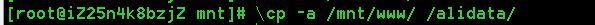 Linux要实现完全复制,可在复制时加上-a参数,也可以配合-f参数强制复制。 -a参数相当于同时使用-p -d -r三个参数; -d是复制链接文件的属性而不是文件本身; -p是保持权限;-r是递归复制,用于复制目录; 以将/mnt/www复制到/alidata目录下的操作示例: 1./mnt/www目录当前为www用户组权限: 2.将www目录完整复制到/alidata目录下: #cp -a /mnt/www /alidata/ 若想在复制时看到执行过程,可以加上-v参数; 3.检查/alidata/www以及其下所有文件和目录权限,验证是不是为完整复制: 上一条: ECS-CentOS /etc/fstab格式简介 下一条: 无下一篇