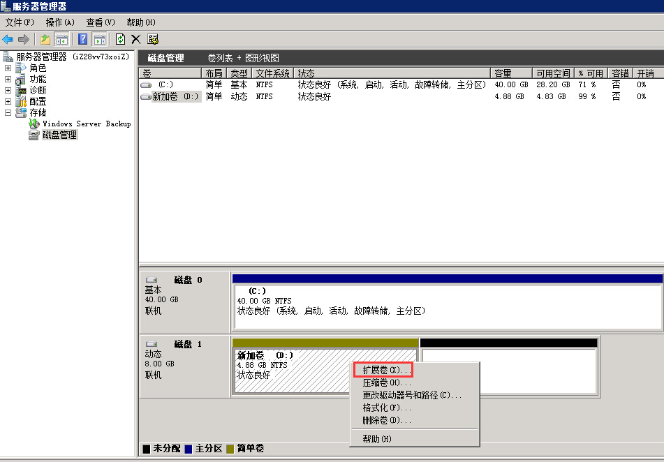 ECS Windows数据盘扩容后如何进行磁盘分区