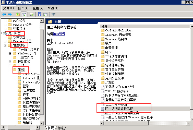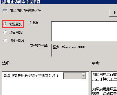 如何处理Windows 系统cmd命令提示符打开提示“命令提示符已被系统管理员停用” Windows系统cmd命令提示符打开提示命令提示符已被系统管理员停用,情况如下图所示: 此问题由于组策略中对命令提示符打开做了显示,导致使用不了命令提示符,解决方法如下所示: 1.首先点击开始-运行-输入gpedit.msc打开组策略。 2.点击用户配置-管理模版-系统-右侧找到"阻止访问命令提示符"。 3.打开"阻止访问命令提示符",将其改为"未配置",之后点击确定,命令提示符便可以使用了,问题即可解决。 如问题还未解决,请联系售后技术支持。