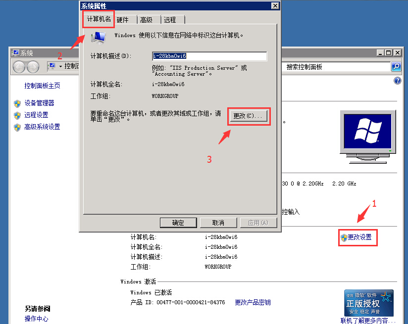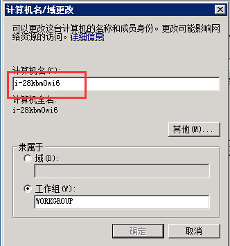 Windows 服务器如何修改计算机名 Windows服务器修改计算机名的方法如下所示: Windows 2008&2012系统: 1.鼠标右键点击“计算机”,选择“属性”,点击“更改设置”按钮,之后在“计算机名”栏目下,点击“更改”按钮。 2.在计算机名处删除之前的用户名,输入要修改的计算机名称后,点击确定,之后重启服务器即可。 Windows 2003系统: 1.鼠标右键点击“我的电脑”,选择“属性”,在“计算机名”栏目下,点击“更改”按钮。 2.在计算机名处删除之前的用户名,输入要修改的计算机名称后,点击确定,之后重启服务器即可。 如果问题还存在,请联系阿里云售后支持。 上一条: 如何使Windows 系统禁用注册表
