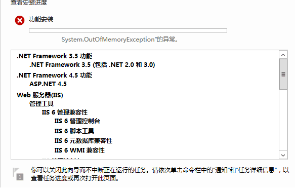 Windows添加角色过程中提示out of memory异常