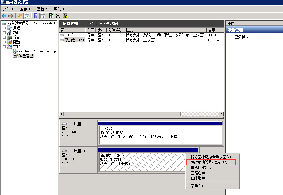 Windows服务器修改磁盘盘符名称的方法如下所示: