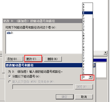 2.然后点击修改,之后选择下要修改的盘符名称,确定就可以了。