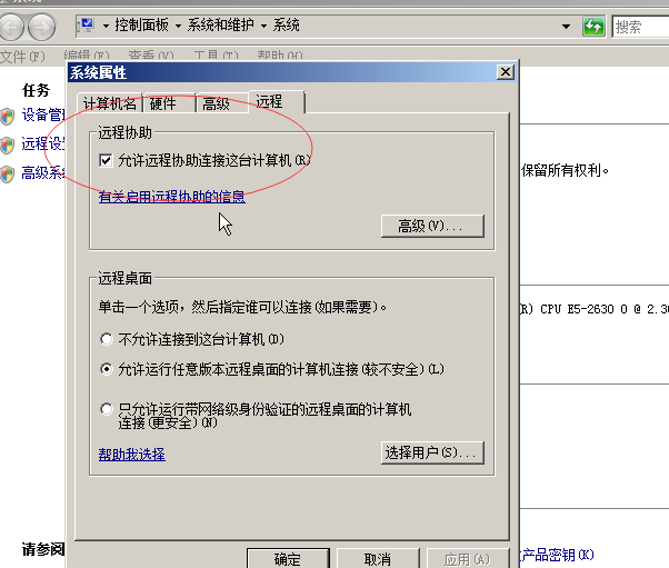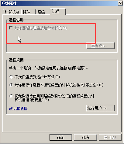 ECS Windows 2008系统“允许远程协助”选项无法勾选