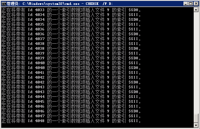 如何解决ECS Windows文件系统异常导致访问分区出现"目录损坏或无法读取"访问错误 用户发现ECS Windows内访问相关分区时,出现如下"目录损坏或无法读取"访问错误的问题,如图所示: 出现该问题通常是由于相应分区的文件系统出现异常而导致的。 用户可以尝试通过使用系统自带的chkdsk工具进行修复,方法如下所示: 1、用户选择远程或使用【管理终端】进入服务器; 2、【开始】→【所有程序】→【附件】→【命令提示符】,右键选择"以管理员身份运行"; 3、假设现在出问题的盘符是D盘,执行如下指令进行文件系统检查和自修复: chkdsk /F D: 4、如下图所示,等到相关操作全部自动操作完成后,再观察问题是否解决: 如问题还未解决,请联系售后技术支持。