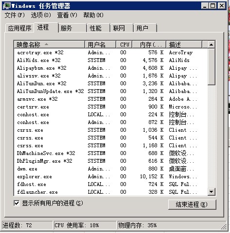 Windows系统内存不足如何排查 Windows会比linux系统对内存的要求高一些,所以内存不足在Windows的服务器上出现的可能性会比较大,当内存不足时会出现Windows Update无法更新、服务器无法远程、系统中的进程或软件被异常关闭等问题,如果出现以上问题则可以考虑内存是否充足的问题,一般来说Windows2003建议选择2G以上,Windows2008及以上系统建议选择4G以上系统,用户可以通过以下方法来排查内存使用情况: 1. 用户首先可以通过管理终端来连接服务器,通过任务管理器来查看当前系统中进程占用内存的状态,用户在“性能”选项卡中可以看到当前内存的使用状态,在“进程”选项卡,点击内存一栏,就可以查看占用内存最多的进程。 2. 如果当前系统的内存占用还可以,用户可以打开管理工具中的事件查看器,选择左侧“Windows日志”->“系统”,然后再检查一下右侧是否有记录内存不足的日志,通常此类日志级别为“警告”,任务类别为“资源消耗诊断事件”,其中会记录消耗内存资源最高的三个进程。 3. 如果通过以上两种方式都无法找到内存占用的进程,则可以提交工单索取CPU和内存监控脚本,使用管理员账户运行,该脚本会持续监控CPU和内存状况,一旦发现有跑满的情况,则会记录跑满的CPU或内存的详细情况,方便问题排查。 如问题还未解决,可以联系阿里云售后技术支持。