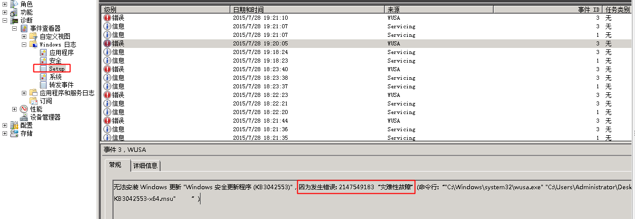 如何处理ECS Windows系统盘根目录权限问题导致MS15-034(HTTP.sys远程执行代码漏洞)补丁安装报错0x8000fff 问题描述: 用户在【云盾控制台】--【安全体检】中,发现有"MS15-034 HTTP.sys远程执行代码漏洞" 安全提示。但按照相应的 "操作提示"尝试进行修复时,发现从微软官方下载后的补丁始终无法安装。 经排查后发现: 用户下载的补丁版本与补丁文件是没有错误的。 安装失败时,查询系统日志发现有如下错误信息: 安装失败: Windows 安装下列更新失败,错误为 0x8000fff: Windows 安全更新程序(KB3042553) 无法安装Windows更新"Windows 安全更新程序(KB 3042553)",因为发生错误:2147549183 “灾难性故障” (命令行....)