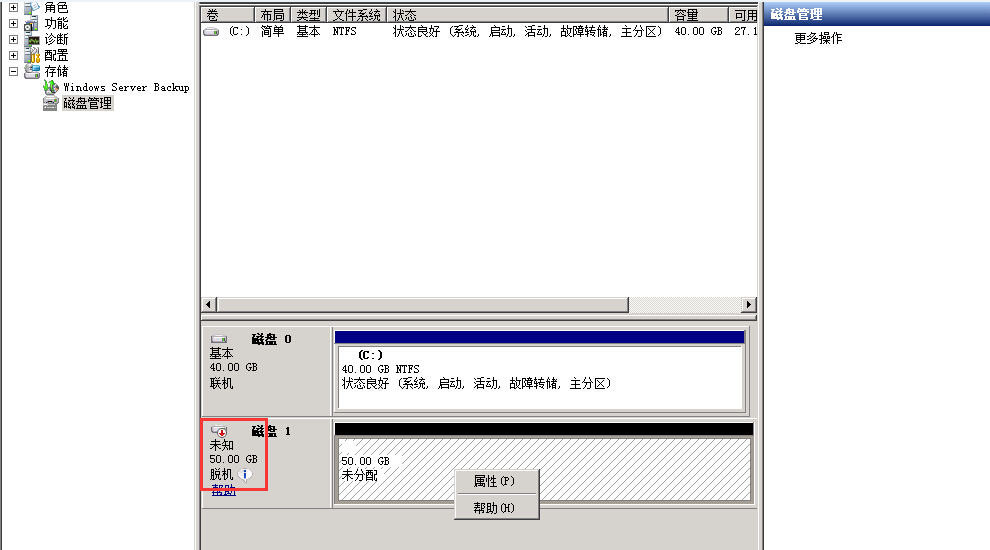 如何解决ECS Windows系统数据盘显示脱机状态,无法格式化或指派分区 问题描述: 在【管理工具】-【计算机管理】-【磁盘管理】中,无数据的数据盘右键无格式化或者新建分区的操作选项,状态会显示脱机。这个现象说明磁盘未能联机到系统,如下图所示: 解决方法: 在磁盘的状态部分(如上图中红框位置),点击右键选择联机就可以了。 如问题还未解决,请联系售后技术支持。