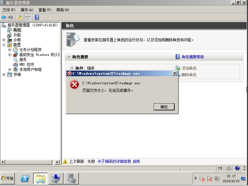 什么问题可能会导致ECS服务器Windows 2008/2012系统内存不足 与Linux系统相比较,Windows系统由于图形化界面操作相对容易而受到许多用户的青睐,用户在购买ECS实例时,需要至少1G内存才能选择Windows系统,所以大部分用户就选择1G内存,这1G内存对于系统运行来说是可以了,但是再配置环境、安装更多软件后就会出现内存不足的情况,当1G内存的ECS使用Windows 2008/2012系统出现以下情况时,就说明服务器内存不足了。 1. 远程登录显示蓝屏 2. 远程登录提示页面文件太小 3. 控制台连接管理终端登录服务器卡在欢迎页面 4. 安装.NET Framework、FTP时提示系统资源不足 5. Windows 2008一键安装包安装Mysql时错误以及安装完成后mysql无法启动 6. 其他方法安装Mysql卡住 7. 安装IIS提示资源不足 8. 安装wamp后,不能启动wampmysqld服务 9. 添加角色时提示页面文件太小,无法完成操作 10. 启动Tomcat提示虚拟内存不足 11. 连接管理终端出现错误提示框“您的系统虚拟内存不足” 12. 服务器管理器控制台打开后自动关闭 13. 打开服务器管理器提示“MMC在一个管理单元检测到错误” 14. 安装SQL Server 2008卡住 除了上述现象外,其他如安装一键安装包再重启服务器之后无法远程、远程登录闪退等,也很有可能是内存不足导致,因为Windows 2008/2012系统本身占用内存较高,所以1G内存运行时容易出现内存不足的情况。 解决方案: 碰到这些情况时除了升级内存外,用户还可以通过设置虚拟内存的方式解决,从而省下升级内存的费用。 虚拟内存是计算机系统内存管理的一种技术,通过匀出一部分硬盘空间来充当内存使用,当内存耗尽时,系统就会自动调用硬盘来充当内存,以缓解内存的紧张。需要注意的是设置虚拟内存会影响磁盘的IO性能,但一般用户的应用对磁盘IO的需求不大,可以放心设置。通常情况下,我们将Windows虚拟内存大小设置为物理内存的两倍。 Windows 2012设置方法如下所示: 打开文件夹——右键点击左侧的“计算机”,选择“属性”,在高级系统设置——>设置——点击高级—>更改——>自定义大小(1024~2048)——设置保存 Windows 2008设置方法如下所示: 首先需要登录服务器,右键计算机—>属性—>高级系统设置——>设置——点击高级—>更改——>自定义大小(1024~2048)——设置保存 如问题还未解决,请联系售后技术支持 下一条: 无下一篇