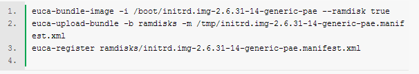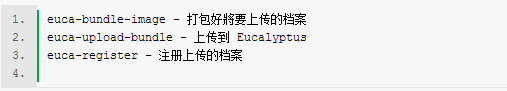 如何搭建一个简易私有云平台 我们都知道,Amazon EC2是一个公共云的计算平台,属于IaaS(基础设施即服务)这类. 现在有一款开源的项目Eucalyptus(Elastic Utility Computing Architecture for Linking Your Programs To Useful Systems),同样实现了Amazon EC2的功能,由于其开源性,注定了搭建一个私有的云计算平台成为可能. 更方便的是Ubuntu9.10服务器版已经集成了Eucalyptus这个开源软件,使的搭建企业私有的云计算平台变得方便而简单. 下面我们将一步步来搭建这个私有的云计算平台. 一 准备工作 1)、 至少准备两台机器, 当然我这里是用虚拟机软件(Sun VirtualBox)来虚拟出两台实际的机器 (如果你也采用Sun VirtualBox,有些注意事项,能够参见后面的附录一) 2)、 底层操作系统: Ubuntu9.10 服务器版 (http://www.ubuntu.com/cloud) 3)、 云服务环境 : Eucalyptus , ( Ubuntu9.10 服务器版 内置) http://eucalyptus.com/ 4)、 Eucalyptus 命令行客户端 5)、 Eucalyptus客户端: Elastic Fox ,这是一个firefox插件 : http://developer.amazonwebservices.com/connect/entry.jspa?externalID=609 -------------------------------------------------------------------------- 二 云计算服务的搭建(使用Ubuntu自带的向导,十分简单的哦) 1)、 一台机器, 作为Cluster(Front End) , 命名为: ubuntu-cluster , 它包含了下面的部分,如下图所示: 2)、 至少一台机器作为Node, 命名为: ubuntu-node1,它包含了下面的部分 Node Controller (nc) 3)、 在作为Cluster的机器上 ,安装基本系统: Ubuntu9.10 服务器版 1.安装引导时,要选择 "Install Ubuntu Enterprise Cloud" 2. 安装过程中,如果提示"Cluster" 还是"Node",一定要选择Cluster 3.安装过程中,提示"Configure postfix" 时 选择 internet Site 4. 安装过程中,提示"Name your cluster" 时 ,请取一个合适的名字,比如我取之为: cluster1 5. 安装过程中,提示"a list of available IP addresses on your network", 一定要选择一个可用的公共IP段. 4) 在作为Node的机器上 ,也安装基本系统: Ubuntu9.10 服务器版 1.安装引导时,要选择 "Install Ubuntu Enterprise Cloud" 2. 安装过程中,如果提示"Cluster" 还是"Node",一定要选择Node, (如果Cluster正在运行,这一步可能不会出现,自动会选择Node 3.安装完一个节点后,,后续的节点可以采用克隆方法,参见后面的 附录二 5) 在Cloud Controller(位于ubuntu-cluster)上注册所有的Node机器: 在ubuntu-cluster上执行:如下图所示: 至此,一个私有的云计算平台已经搭建好了,下面就开始说,怎样使用了,很简单吧! 三 云计算平台管理之命令行工具(Euca2ools) 1)、在 https://YourIP:8443 中注册个人信息然后登录下载 证书 euca2-yourname-x509 .zip 2)、 在客户端机器上执行,如下图所示: 3)、在客户端机器上执行, 安裝 Euca2ools 和 EC2-API-Tools,如下图所示: 4)、在客户端机器,使用 Euca2ools 上传 Kernel / Ramdisk / FS Image (使用者可注册 Image,但只有管理者才可注册 kernel/ramdisks) 1. 目前 Eucalyptus 系統上没有 Kernel、Ramdisk 和 FS Image,所以我們使用官方提供的 Image (上传需要用到三个指令),如下图所示: 2. 上传Kernel,如下图所示: 3.上传 Ramdisk,如下图所示: 4. 查看已上传到档案: 方法一: 参考链接https://YourIP:8443/#images 方法二: 参考链接:euca-describe-images 5. 根据查看的结果,上传FS Images:(分配 Kernel 和 Ramdisks 給 VMs 有三种方法,见附录三),如下图所示: 5)、 申請 key pair,以便 ssh 登入 instance,如下图所示: 6) 、在客户端机器,开启虚拟机. 1.查看 euca-describe-images ,获得希望启动Image emi 2.启动一个虚拟机,如下图所示: 3.查看这个虚拟机的基本信息,比如IP地址,和 此实例id,如下图所示: 4.登录这个新启动的虚拟机,如下图所示: 5.终止这个虚拟机实例,如下图所示: 附录一: 虚拟测试环境的搭建方法: 1.虚拟机软件: Sun VirtualBox 2.管理 -> 全局设定 -> 网络 中 选择 "Host-Only" 点编辑,然后选择 "DHCP服务器", 禁用"启用服务器" 3建立两台虚拟机, Linux/Ubuntu ,网络选择Host-Only方式 4在宿主机器上,将可以联互联网的 网卡设置为 针对 Host-Only 网卡的共享 说明,这里之所以采用 , Host-Only + 通过宿主机器共享上网 ,而不采用Bridged的联网方式,是前者可以在离开网络支持的情况下, 虚拟机之间的关系保持不变. 附录二: 分配 Kernel 和 Ramdisks 給VMs 有三种方法,如下所述: 1) 在 'ec2-bundle-image' 步骤指定 ec2-bundle-image -i vmimage.img --kernel --ramdisk 2)在 'ec2-run-instances' 步骤指定 ec2-run-instances --kernel --ramdisk 3) 在 https://your.cloud.server:8443 选择 'Configuration' 标签,新增 和 作为预设的 kernel 和 ramdisk 附录二: VirtualBox 系统克隆及其可能后续操作: 1) VirtualBox 的虚拟硬盘的克隆命令: VBoxManage clonevdi old.vdi new.vdi 2) Ubuntu 修改主机名: 1. 启用root用户: sudo passwd root 2. .以root用户身份登录 3. pico /etc/hosts : 修改对应的旧的主机名 4. pico /etc/hostname : 删除该文件的所有内容,添加新的主机名 5. 执行命令: hostname <新的主机名> 6. logout 7. 禁用root用户: sudo passwd -l root 3)如果找不到网卡,不妨,查看一下: ifconfig –a ,然后配置 /etc/network/interfaces ,然后重启网卡 附录四: 删除Image的方法 1) 先取消注册 ec2-deregister 2) 移除位于 bucke 的档案 ec2-delete-bundle -a $EC2_ACCESS_KEY -s $EC2_SECRET_KEY --url $S3_URL -b -p 3) 移除 image 和 bucke (—clear) ec2-delete-bundle -a $EC2_ACCESS_KEY -s $EC2_SECRET_KEY --url $S3_URL -b -p --clear 附录五: Euca2ools常用命令,介绍如下: euca-describe-availability-zones verbose 察看可用的资源 euca-describe-instances 察看目前正在執行的 虚拟机(VM) euca-bundle-image 打包好将要上传到档案 euca-upload-b