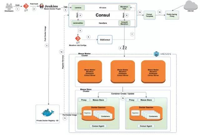 每隔几年,就会出现一种革命性的新技术来改变IT世界的工作方式。十年之前,虚拟化技术的出现铺平了通往云服务和云(如阿里云)计算的道路。现在,容器以及其创造出的充满活力的生态系统劲头正猛。本文将向你展示三星如何基于Mesos和Docker管理和运行物联网规模的计算基础设施的。 容器革命很大程度上要归因于DevOps的进步,更要归因于Docker的成功。容器是对流行的『微服务架构』的完美补充,正因如此,这也使得将软件应用设计为独立部署的服务成为可能。在三星,已完全接受这种新趋势。SAMI是个十分复杂的平台,很多部分都是可替换和移动的。在撰写本文的时候,我们已经有40多项内部服务(增加中),及目前最流行的一些后端技术,其中包括NoSQL数据存储、配置存储、服务注册表、图形数据库、HDFS、消息代理、大数据处理器、内存缓存和传统SQL数据库。这个平台仍然在不断发展,我们会不断引进新技术和应用来应对物联网所需的大数据处理过程中出现的问题和挑战。我们负责设计和管理支持其工作负载的基础设施,确保可扩展性、安全性和一致性,同时还要保持敏捷! 大约在一个月之前,我们把SAMI平台搬到Mesos和Docker上运行。可把Mesos看做数据中心的内核,它抽象了所有的底层硬件和虚拟机,让你把数据中心当成一个超级大电脑来编程。同时,Docker作为容器化技术,简化了打包和搬运应用的方式。这真正改变了我们对应用打包、部署、协调和监督的思考方式。这要求我们对自动化流水线进行彻底的重新设计,引进令人振奋的新技术的同时,也要淘汰许多老工具。 向容器技术推进 在容器成为家喻户晓的热门话题前,我们曾有一个相当不错的全面自动化流水线,其核心是我们的配置管理(CM)系统。从配置到符合应用程序的部署,一切都通过我们的配置管理工具实现自动化。但是随着我们平台的增长,这些工具的缺点开始逐渐暴露出来。为了支持和衡量如SAMI般日益复杂的系统,一些新功能被迅速推出,我们急切需要一种新方法来部署和管理日益增多的微服务。 下面是一些需要解决的限制问题(注:这些都是CM工具中常有的陷阱,而未必是执行时常见的): 资源浪费 1.节点/机器专属角度(Node/Machine-specific perspective) 2.声明:Run ‘this’ on ‘that’ VM 3.异构基础框架困难:几乎所有的cookbook/module/playbook都不能跨越两个发行版本 4.无资源隔离 5.配置和部署时间长 6.静态分区 7.无自愈功能:机器宕机,操作员需手动更换死亡节点 8.多租户需要手动配置 9.陡峭的学习曲线 10.没有依赖/工作流管理:可以不执行“仅当部署Service-A之后且通过健康检查再部署Service-B” 要在物联网规模下运行一个现代平台,这些限制是我们不可接受的。 用Mesos和Docker过渡解决问题 1.开始,我们决定建立一个自动化的流水线,这将使以下成为可能: 2.把应用软件打包成Docker镜像,便于快速部署。 3.使用现代集群管理/分布式初始化系统,确保应用程序定义副本始终都在运行。 4.构建有容错、自愈功能的基础设施。 5.把现有的基础设施接入流水线。 6.建立一个快速反应的协调系统。 7.使用Git作为唯一来源:所有工作配置都存放在Git中,这能降低建立一个修改管理/审计系统的难度。 8.最后,组建一个持续交付平台。它能快速强大地完成工程(包括QA)进行生产部署。这是我们的使命所在,它能把我们从日常运营的开销和冗杂中解放出来,把时间精力集中在发展新的服务和改善流程上,这样,才能为组织贡献更多价值。 为了实现以上目标,我们提出了以下设计: 1.构建系统将会把应用程序打包成Docker镜像。之后这些镜像将会被push到Docker内部私有库。 2.高可用性(HA)Mesos集群将提供数据中心(DC)级别的抽象,正如典型操作系统提供工作站级别的抽象一样。DC是一个新型因素。 3.Mesos将作为一个DC-wide资源管理器。 4.所有Marathon和Chronos的作业配置都将被check到Git。基础设施中的任何改动都会被追查到。 5.Marathon将作为DC-wide 初始系统/进程管理器。所有的长时运行作业会通过Marathon进行部署和管理。 6.Chronos将作为DC-wide cron系统。所有的短时/批处理作业会通过Chronos进行调度管理。 7.Consul将继续作为服务注册表。用Registrator监听Docker事件和私有库的改动并报告给Consul。这些最终将被Mesos-DNS所取代。 8.Git2Consul将用于同步Git仓库到Consul的KV存储,同时Consul的handler会监视KV的改动并通过REST API报告给Marathon和Chronos。 我们现在的工作流程大致如下几步: 1. 当开发者提交的时候,Git Post-Receive Hook 会开启Jenkins build。 2. Jenkins接着使用maven-dockr插件进行创建、标记和push Docker镜像到Docker私有库中。它也会在Consul的KV中更新镜像标记。 3. Consul Handler监视KV的更改并更新包含Marathon作业配置的Git repo。 4. Git2Consul获取这些更改并将repo同步到Consul的另一个KV。 5. 另一个Handler监视这个KV,将作业配置发送给Marathon。若该服务还没有注册,创建新服务。否则更新该服务。 6. Marathon作为集群管理者和分布式初始化系统。它用API调用Docker daemon来启动容器。 7. Registrator(一个小型服务)监听Docker事件,更新Consul的服务目录。 8. 服务注册表的任何改动都能被Consul-Template捕捉到,这将刷新所有配置(主要是HAProxy)并重新加载相关服务。 如上所述,无需人工干预,应用程序会自动创建、打包和部署到各种环境中。若你认真理一遍就会发现整个审计线是这样的: