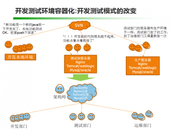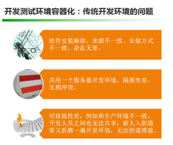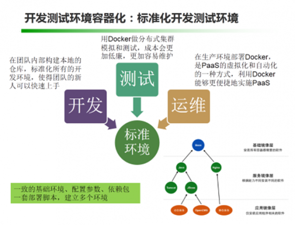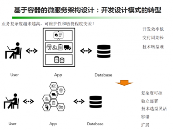嘉宾简介 资深质量优化专家,12年软件测试与质量管理经验 《软件性能测试诊断分析与优化》等多本IT畅销书作者 演讲实录 今天主要交流的主题是基于Docker的开发模式如何驱动持续集成落地实施,这里会涉及两个主要的话题,一个是所谓Docker的开发模式是怎样的,与传统的开发模式有什么区别;另外一个是持续集成作为敏捷开发的最佳实践,结合Docker来实施会有什么样的效果,会不会有更好的促进作用,尤其是在传统企业中实施。也希望跟大家一起交流一下关于Docker的一些具体实施问题、实施经验 首先我们来看看,在传统的开发运维模式下,会存在哪些问题。我稍微归纳总结了一下,大概会有以下三个问题: 1、从需求到版本上线中间是个黑箱子,风险不可控 2、开发各自为政,烟囱式开发,未考虑共享重用、联调,开发的资产积累不能快速交移到运维手中 3、开发设计时未过多考虑运维,导致后续部署及维护的困难 应对这样的问题,我们通常倡导的解决之道是:运维前移,统一运维,建立持续交付服务体系。但这样空喊是没用的,我们要来点实际的,尝试利用一些技术手段真正解决开发运维一体化的问题,具体推进DevOps的实施。 那好,我们看看最近1、2年非常火的Docker技术,看能不能在解决上述问题上带来一些具体的突破,或者给我们带来一些解决具体问题的启发。我们先从Docker的一些技术特性来看,这些新的技术可能带来的改变: 启动速度更快,毫秒级的启动速度,这对于快速部署开发测试及运维环境非常有利。 1、Docker首先是一个容器级虚拟化技术,相比传统虚拟化技术,容器级的虚拟技术是操作系统内核层的虚拟,所以能节省更多资源、提升性能,意味着单位机器资源消耗下,能承载更复杂更庞大的应用系统架构。 2、由于Docker镜像的天然可移植性,就像集装箱一样快速打包应用以及依赖项,在开发、测试、运维之间移动,所以可以推进 开发-测试-运维 环境的统一,持续集成(CI)能发挥更大的作用,例如通过CI构建应用、检查代码,打包到Docker、分发部署到测试和准生产环境,进行各类测试,都可以更方便快捷和统一。 3、镜像分层,部署时可以按需获取镜像生成容器并快速启动运行,因此有利于快速的部署扩容,解决运维中水平扩容的问题。 既然Docker的一些技术特性看起来确实能给开发测试运维带来一些新的东西,那么我们接下来就具体看看,这些新的技术特性具体如何应用,及应用过程中可能带来的问题。容器可以把应用以及它的依赖项进行打包,这样带来的好处就是应用隔离,能不能把这种隔离特性用于解决一些架构问题呢?因为架构设计不好的话,给开发、测试,尤其是运维及后续的维护管理带来很多麻烦,例如随着业务复杂度越来越高,可维护性和敏捷程度随之变差。 传统的应用通常采用所谓的三层架构,例如:界面层 – 业务逻辑层 – 数据层,通常我们会把所有实现业务逻辑层的代码编译构建后部署到中间件,再通过负载均衡、集群等解决分流、灾备等问题。但这种架构设计带来的问题是: 开发效率低 随着应用复杂度的增加,越来越少开发人员对应用能有全局性的深度理解。新功能开发和缺陷修复难度呈几何性增加。代码修改的正确性无法保障。而庞大的代码库需要更庞大的开发团队来维护,无形中又增添了管理、沟通和协调的成本。另外,新加入的团队成员需要花费大量的时间和精力来熟悉一个复杂的代码库。 交付周期长 在单一进程的单块架构下,任何微小的改动都需要重新编译、集成、测试和部署整个应用。随着应用体积的增大,交付流程和反馈周期都会相应变长,应用发布的代价也随之增加。于是应用交付周期变缓,交付间隙积累的代码变动增加,从而对于下次交付产生更大的压力,形成恶性循环。 技术转型难 单一进程、单块架构意味着中心化的技术选型。比如,应用的不同逻辑组建通常需采用相对统一的编程语言、框架和技术栈。这些在项目初始阶段便已定型。之后,即便是应用中全新的逻辑组件,也很难采用不同的技术栈。而当应用达到一定规模后,全局化的技术栈更新会面临很高的风险。所以,单块架构应用一旦定型,就很难再享受行业技术变更、发展所带来的红利。有了容器技术之后,微服务设计也被大家慢慢提到架构设计的前沿进行讨论了,这方面推荐大家看一本书《Building Microservices》。 微服务架构的诞生和容器技术的流行,几乎是同时发生的,这并不是偶然,而是互联网时代倒逼传统技术和架构而产生的变革,而以Docker为代表的容器技术则为微服务理念提供了匹配的实现机制。在微服务架构下,我们将原本单一的应用按照功能边界分解成一系列独立、专注的微服务。每个微服务对应传统应用中的一个组件,但可独立编译、部署和扩展。相对单块架构,微服务具备以下优势: 1)独立部署:由于微服务具备独立的运行进程,所以每个微服务也可独立部署。当某个微服务发生变更时无需编译、部署整个应用。由微服务组成的应用相当于具备一系列可并行的发布流程,使得发布更加高效,同时降低对生产环境所造成的风险,最终缩短应用交付周期。 2)复杂度可控:在将应用分解的同时,规避了原本复杂度无止境的积累。每一个微服务专注于单一功能,并通过定义良好的接口清晰表述服务边界。由于体积小、复杂度低,每个微服务可由一个小规模开发团队