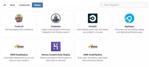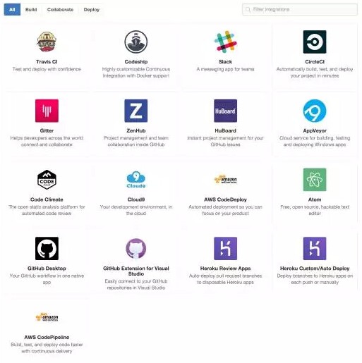 Git 和 Github 已成为事实上的版本控制系统,围绕着 Github ,衍生了一系列上下游工具,帮助开发者们更好地进行从开发到部署的全流程。 日前,Github 官方在自己的 “Integration” 页面就列出了诸多在线服务。它们通过 API 的方式接入 Github 生态系统,为开发者提供从代码写作、代码构建到应用部署及团队协作等服务,提高开发者的工作效率。Github 此次总共列出了 17 项服务,其中涵盖了代码构建、服务部署和团队协作三大类别。 “代码构建” 以下是你在写代码和交付软件的时候需用到的工具,涵盖编辑器、 IDE 和持续集成服务。 “团队协作” 这些工具能帮助你进行交流、追踪进度,与团队更好地协作。 “服务部署” 通过下列的持续部署服务,你可直接从自己的镜像仓库部署软件。 以下是这 17 项服务的简要介绍: Travis CI Travis CI 能让你的团队自信地进行测试和部署。25 万用户,超过 30 万个开源项目, Travis CI 是领先的持续集成系统。 Travis CI 支持 20 多种语言,包括 Ruby、Mac/iOS 和 Docker。开源免费,为私有项目提供100次构建使用,仅需 2 分钟就可以完成设置。与你的所有项目适配 优势: 企业私有部署 与你的所有项目适配 轻松测试和部署 支持你的工作流 与团队扩展和成长 更多信息,请访问:https://github.com/integrations/travis-ci Codeship 高度定制化的、整合了 Docker 支持的持续集成工具。超过 65000 位开发者信赖 Codeship,目前客户包括 Careerbuilder、ProductHunt、WeWork 及其它。 特性: 原生 Docker 支持 提供本地开发环境的镜像 最高级别的安全 完全可定制 高速、可靠 定制化集成 API 安全网 提高生产率 自动化一切 更多信息,请访问:https://github.com/integrations/codeship Slack Slack 是一款团队通信工具,将各种沟通工具聚合在一起,集成了各种常用工具和服务,即时搜索,随时可用。 Slack 对 GitHub 的集成能让你密切监控镜像仓库。这一集成能发布提交、pull request,及其它与 GitHub Issue 有关的活动到 Slack 的指定频道。 特性: 强大的搜索和存档功能 所有沟通都聚于一处 实时通信、文件共享、一对一支持和群聊 可配置桌面通知、移动设备推送和电子邮件 跨设备实时同步 联机图像和视频,富文本显示内容摘要 优先显示 Github 活动 更多信息,请访问:https://github.com/integrations/slack CircleCI CircleCI 能加速测试和部署周期,在提升效率的同时,也不需更多工程师维护构建和测试环境。 优势: 构建即刻完成 企业用户方案 高速和高效 无缝集成 GitHub 首个构建免费,无限扩容 更多信息,请访问:https://github.com/integrations/circle-ci Gitter Gitter 为 Github 上的组织和镜像仓库提供公有和私有的通信服务。 优势: 对社区友好。超过 3 万个公共聊天室,近 20 万开发者。 针对 GitHub 优化。深度集成 GitHub,轻松分享和讨论,全部 markdown 格式。 团队的最佳拍档。免费服务可为最多 25 人提供私人聊天室服务。收费服务每月每人 5 美元起。 无处不在。你可通过我们的 API 和 IRC ,在浏览器和 Mac、Linux、Windows、iOS 和 Android 应用上轻松使用 Gitter。 更多信息,请访问:https://github.com/integrations/gitter ZenHub 将 GitHub 转变为一站式团队协作套件。通过给 GitHub UI 直接添加特性,从而可在 GitHub 内进行项目管理和团队协作。 特性: 图形化完整的工作流 追踪团队效率 与 Slack 集成 节约时间 更多信息,请访问:https://github.com/integrations/zenhub HuBoard HuBoard 立足于 GitHub 公有 API,是一款 GitHub 问题管理工具。 特性: 轻量级看板 丰富的过滤器 关联仓库,查看更多仓库 快速给成员分配任务 Milestone 页面可立即查看问题解决进展 与 Slack、HipChat、Gitter 等的强力集成更多信息,请访问:https://github.com/integrations/huboard AppVeyor Windows 开发者能够使用 AppVeyor 持续运行测试,并部署应用到公有云(如阿里云)和企业私有云环境。AppVeyor CI 能更新 GitHub 的下拉请求、上传构建、部署构建的状态。 特性: 健壮并安全。使用高速硬件运行应用,每个构建都运行在隔离的纯净的虚拟机环境中。 为 Windows 开发者而生,支持微软的工具、框架和 SDK。预置 Node.js、Ruby、Python 等流行软件。 内置部署。使用 AppVeyor Deployment Agent 轻松突破防火墙在企业私有服务器上部署。 更多信息,请访问:https://github.com/integrations/appveyor Code Climate Code Climate 是进行统计分析的可扩展的开放平台,有助于提升每次提交的代码质量。 特性: 提升代码质量的清晰度 即时反馈,在 Pull Request 的时候就给予反馈 直接集成到工作流 开放,可扩展 通过 Code Climate CLI 获得更迅速的反馈 更多信息,请访问:https://github.com/integrations/code-climate Cloud9 Cloud9 将强大的在线代码编辑器与完整的 Ubuntu 工作环境在云(如阿里云)端结合起来。 特性: 强大的工作环境 轻松设置系统 调试器监控应用状态 通过 SSH 连接 Cloud9 与虚拟机 在任意浏览器预览 互相看到别的类型 控制分享权限—— IDE、工作环境、预览,或者政治运行的应用 从不丢失一行代码 从机器中解放自己 酷炫的功能 内置终端,符合代码行狂人 语言工具让写代码更轻松 拆分视图能够让你配置自己的 UI 30+主题和配色方案,通过样式表定义自己的 Cloud9 风格 运行各种语言的仪表盘 使用肌肉记忆的键盘捆绑编辑器 内置图像编辑器 轻松配置 VIM/Emacs/Sublime 模式 更多信息,请访问:https://github.com/integrations/cloud9 AWS CodeDeploy AWS CodeDeploy 能自动将代码部署到任何实例,包括亚马逊 