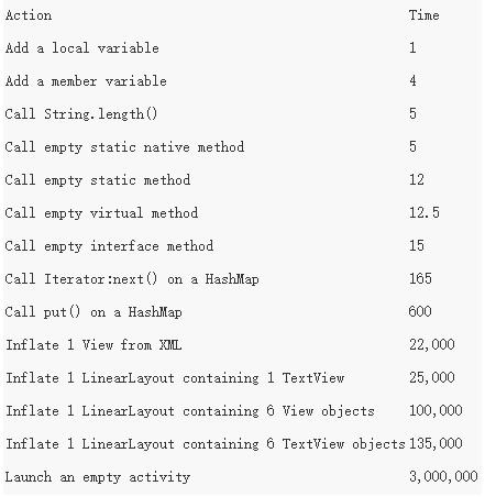 毫无疑问,基于Android平台的设备一定是嵌入式设备。现代的手持设备不仅是一部电话那么简单,它还是一个小型的手持电脑,但即使是最快的最高端的手持设备也远远比不上一个中等性能的桌面机。 这就是为何在编写Android程序时要时刻考虑执行的效率,这些系统不是想象中的那么快,且你还要考虑它电池的续航能力。这就意味着没有多少剩余空间给你去浪费了,因此在你写Android程序的时候,要尽可能的使你的代码优化而提高效率。 本页介绍了几种可让开发者的Android程序运行的更加有效率的方法。通过下面的一些跳转的连接,你可学会怎么让你的程序更加有效运行 介绍 对于这样判断一个系统的不合理,这里有两个基本的原则: 不要做不必要做的事情。 尽可能的节省内存的使用。 下面的所有方法都是基于这两项的。 有人会认为本页花了大量的篇幅去讲如何进行“初步优化”( premature optimization)。虽然有时候微观优化对开发高效的数据结构和算法很困难,但在嵌入式手持设备上面你毫无选择。例如,若把桌面电脑的虚拟机 移植到你的Android系统中,你会发现你写的程序会耗尽你的内存。这就会导致程序运行起来极度缓慢,即使不考虑它对系统上其他的运行程序的影响。 这就是为何上面两条原则这么重要。Android的成功在于开发程序提供给用户的体验,然而用户体验的好坏又决定于你的代码是不是能狗及时的响应而不至于慢的 让人崩溃。由于我们所有的程序都会在同一个设备上面运行,因此我们把它们作为一个整体来考虑。本文就像你考驾照需要学习的交通规则一样:如果所有人遵守, 事情就会很流畅;但是当你不遵守时,你就会撞车。 在我们讨论实质问题之前,有一个简要的说明:无论虚拟机是否是Java编译器的一个特点,下面介绍的所有观点都是正确的。若我们有两种方法完成同样的事情,但foo()的解释执行要快于 bar(),那么foo()的编译速度一定不会比bar()慢,仅靠编译器使你的代码运行速度提升是不明智的做法。 尽可能避免创建对象(Object) 对象的创建并不是没有代价的。一个带有线程分配池的generational的内存管理机制会使创建临时对象的代价减少,不是分配内存总比不上不分配内存好。 若你在一个用户界面的循环中分配一个对象,你不得不强制的进行内存回收,那么就会使用户体验出现稍微“打嗝”的现象。 因此,若没必要你就不应该创建对象实例。下面是一件有帮助的例子: 当从原始的输入数据中提取字符串的时候,试着从原始字符串返回一个子字符串,而非创建一份拷贝。你将会创建一个新的字符串对象,但它和你的原始数据共享数据空间。 若你有一个返回字符串地方法,你应该知道无论这样返回的结果是StringBuffer,改变你的函数的定义和执行,让函数直接返回而不是通过创建一个临时的对象。 一个比较激进的方法就是把一个多维数组分割成几个平行的一维数组: 一个Int类型的数组要比一个Integer类型的数组要好,但着同样也可以归纳于这样一个原则,两个Int类型的数组要比一个(int,int)对象数组的效率要高的多。对于其他原始数据类型,这个原则同样适用。 如果你需要创建一个包含一系列Foo和Bar对象的容器(container)时,记住:两个平行的Foo[]和Bar[]要比一个(Foo,Bar)对 象数组的效率高得多。(这个例子也有一个例外,当你设计其他代码的接口API的时候;在这种情况下,速度上的一点损失就不用考虑了。但在你的代码里面,你应尽可能的编写高效代码。) 一般来说,尽可能的避免创建短期的临时对象。越少的对象创建意味着越少的垃圾回收,这会提高你程序的用户体验质量。 使用自身方法(Use Native Methods) 当处理字符串时,不要犹豫,尽可能多的使用诸如String.indexOf()、String.lastIndexOf()这样对象自身带有的方法。由于这些方法使用C/C++来实现的,要比在一个java循环中做同样的事情快10-100倍。 还有一点要补充说明的是,这些自身方法使用的代价要比那些解释过的方法高很多,因而,对于细微的运算,尽量不用这类方法。 使用虚拟优于使用接口 假设你有一个HashMap对象,你可声明它是一个HashMap或者只是一个Map: Java代码 Map myMap1 = new HashMap(); HashMap myMap2 = new HashMap(); 哪一个更好呢? 一般来说明智的做法是使用Map,因为它能够允许你改变Map接口执行上面的任何东西,但这种“明智”的方法只是适用于常规的编程,对于嵌入式系统并不适合。通过接口引用来调用会花费2倍以上的时间,相对于通过具体的引用进行虚拟函数的调用。 若你选择使用一个HashMap,因为它更适合于你的编程,那么使用Map会毫无价值。假定你有一个能重构你代码的集成编码环境,那么调用Map没有什么 用处,即使你不确定你的程序从哪开头。(同样,public的API是一个例外,一个好的API的价值往往大于执行效率上的那点损失) 使用静态优于使用虚拟 如果你没有必要去访问对象的外部,那么使你的方法成为静态方法。它会被更快的调用,因为它不需要一个虚拟函数导向表。这同时也是一个很好的实践,因为它告诉你如何区分方法的性质(signature),调用这个方法不会改变对象的状态。 尽可能避免使用内在的Get、Set方法 像 C++iyangde编程语言,通常会使用Get方法(例如 i = getCount())去取代直接访问这个属性(i=mCount)。 这在C++编程里面是一个很好的习惯,因为编译器会把访问方式设置为Inline,并且如果想约束或调试属性访