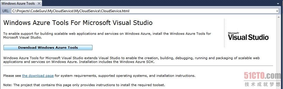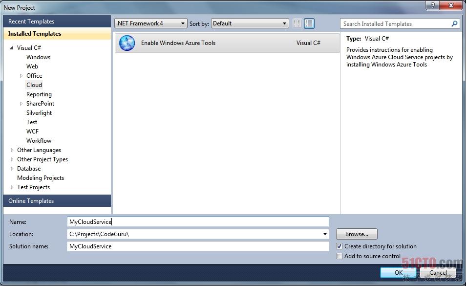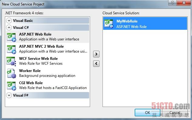 一、引言 云计算是一个可让你在云中(也就是在远程服务器中)开发与部署应用程序的基础结构。使用云计算的主要优点是: (1)可以降低成本 (2)可以获得良好的可扩展性 (3)可以增加灵活性和提高效率。 微软的Windows Azure平台是一个云操作系统,它包含一系列云技术,其中的每种技术都负责提供一组特定的服务。本文首先会对云计算及优点做一个概述,然后会和你一起探讨怎样使用Microsoft Visual Studio 2010开发云应用程序。 二、前提条件 要使用本文中的代码样例,你应该在你的系统中安装如下工具: * Microsoft Visual Studio 2008 * Microsoft Azure Tools for Microsoft Visual Studio 当然,你也可使用Microsoft Visual Studio 2010 和 Windows Azure Tools for Microsoft Visual Studio 2010 三、什么是云计算? 现在,云计算是一个时髦的词汇。它被定义为一种现象,它承诺可通过增加应用程序部署的速度和降低成本来增加业务的敏捷性。注意:云计算并不是一次技术革命,它是一次业务与流程的革命。Windows Azure平台是微软的云计算框架,它提供各种各样的互联网服务,这些服务既可在公司内部环境中使用,也可在Internet上使用,这对以后阿里云应用开发有所帮助。 Microsoft Windows Azure Services平台给你提供了一个托管平台,以及一些驻留在云中的,开发应用程序所必须的工具。它包括下面这些组件: 1. Microsoft .NET Services 2. Live Services 3. Microsoft Azure 4. SQL Azure 在Microsoft Visual Studio 2010中构建你的第一个Cloud Service Microsoft Visual Studio 2010支持很多功能,它可让桌面或Web应用程序开发变得更加容易。在这一小节里,我们会一起来探讨怎样使用Visual Studio 2010来开发云应用程序。Visual Studio 2010包含Windows Azure Tools,它可帮助开发者开发,调试与部署可驻留在云中的应用程序和服务。这是MSDN的说明:“Windows Azure Tools 与 Visual Studio 2010可以让创建,配置,编辑,调试与部署运行在Windows Azure上的应用程序变得更加容易。它们可让你继续使用现在掌握的ASP.NET 与 Microsoft Visual Studio的技能。” 要在Microsoft Visual Studio中创建你的第一个Cloud Service,可按照下面这些步骤来进行: 1、打开Microsoft Visual Studio 2010 IDE 2、点击“File”->“New Project” 3、选择“Cloud Service”作为项目类型 如图1所示: 图1 4,在“Enable Windows Azure Tools”上单击,然后点击“OK” 如图2所示: 图2 5,在接下来出现的这个界面中点击“Download Windows Azure Tools”按钮。实际上,如果你的系统中没有安装Windows Azure Tools for Visual Studio 2010,你就不能使用Microsoft Visual Studio 2010来开发可驻留在云中的应用程序。若你点击了上面那个界面中的那个按钮,那么,Windows Azure Tools for Visual Studio 2010的下载就会开始了。你可在下面这个界面中看到这个过程。 如图3所示: 图3 注意:在你安装Windows Azure Tools for Visual Studio 2010以前,你应该首先在你的系统中安装IIS。如果Windows Azure Tools for Microsoft Visual Studio 2010的下载完成了,双击那个.msi文件来安装它。下面这个界面展示了安装的过程。 如图4所示: 图4 当Windows Azure Tools for Visual Studio 2010的安装完成的时候,会出现下面这个界面: 如图5所示: 图5 注意:你应该以管理员身份运行Visual Studio 2010。现在,Windows Azure Tools for Microsoft Visual Studio 2010与必要的组件都已经安装完毕了,你已可使用开发云应用程序需要的模板与运行时组件了——你不需要为访问Azure云服务而注册,你也不需要邀请码。 现在,按照刚才讨论的步骤(步骤1到步骤3)在你的Microsoft Visual Studio 2010 IDE中创建一个Cloud Service 指定ASP.NET Web Role作为那个Cloud Service的角色。那个角色的默认名字可能是“WebRole1”,把它重命名为“MyWebRole”,当这一切都做好以后,点击“OK”按钮。 如图6所示: 图6 在你的解决方案中,你会看到两个独立的项目。其中一个是Cloud Service项目,另外一个是ASP.NET Web Role项目。解决方案资源管理器窗口的样子应该和下面这个界面类似。 如图7所示: 图7 为了在云环境中托管一个或多个角色项目,这个Cloud Service项目会包含一些必要的配置信息。在解决方案资源管理器窗口中,如果你看一下这个Cloud Service项目的Roles节点,你会发现它只有一个条目——一个叫做“MyWebRole”的角色。这意味着你的Cloud Service将会托管一个角色。如果需要的话,你可以在你的Cloud Service中添加更多的角色。 在解决方案资源管理器窗口中,你还会看到两个XML配置文件,分别叫做“ServiceDefinition.csdef” 和 “ServiceConfiguration.cscfg”。那些文件用于定义在云中托管一个或多个角色所必需的配置。 <?xml version="1.0"?><ServiceConfiguration serviceName="MyCloudService" xmlns="http://schemas.microsoft.com/ServiceHosting/2008/10/ServiceConfiguration"> <Role name="MyWebRole"> <Instances count="1" /> <ConfigurationSettings> <Setting name="DiagnosticsConnectionString" value="UseDevelopmentStorage=true" /> </ConfigurationSettings> </Role> </ServiceConfiguration> ServiceDefinition.csdef文件的内容如下所示: <?xml version="1.0" encoding="utf-8"?> <ServiceDefinition name="MyCloudService" xmlns="http://schemas.microsoft.com/ServiceHosting/2008/10/ServiceDefinition"> <WebRole name="MyWebRole"> <InputEndpoints> <InputEndpoint name="HttpIn" protocol="http" port="80" /> </InputEndpoints> <ConfigurationSettings> <Setting name="DiagnosticsConnectionString" /> </ConfigurationSettings> </WebRole> </ServiceDefinition> 现在,要运行你的应用程序,需要把这个Cloud Service项目设置为启动项目。当这个Cloud Service运行的时候,它会轮流启动