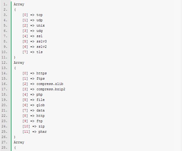Streams 是PHP提供的一个 强有力的工具,我们常在不经意会使用到它,若善加利用将大大提高PHP的生产力。 驾驭Streams的强大力量之后,应用程序将提升到一个新的高度。 下面是PHP手册中对Streams的一段描述: “Streams 是在PHP 4.3.0版本被引入的,它被用于统一网络、文件、数据压缩等类文件的操作方式,为这些类文件操作提供了一组通用的函数接口。简而言之,一个stream就是一个具有流式行为的资源对象。也就是说,我们可用线性的方式来对stream进行读取与写入。且可用使用fseek()来跳转到stream内的任意位置。" 每个Streams对象都有一个包装类,在包装中可添加处理特殊协议和编码的相关代码。PHP中已内置了一些常用的包装类,我们也可创建和注册自定义的包装类。我们甚至能使用现有的context与filter对包装类进行修改与增强。 1、Stream 基础知识 Stream 可通过 PHP默认的包装类是file://,也就是说我们在访问文件系统的时候,实际上就是在使用一个stream。我们可通过下面两种方式来读取文件中的内容,readfile('/path/to/somefile.txt')或者readfile('file:///path/to/somefile.txt'),这两种方式是等效的。若你是使用readfile('http://google.com/'),那PHP会选取HTTP stream包装类来进行操作。 正如上文所述,PHP提供了不少内建的包转类,protocol以及filter。 按照下文所述的方式,可查询到本机所支持的包装类: 在我机器上的输出结果为: 提供的功能非常多,看上去还不错吧? 除了上面所说的内建的Stream,我们还可为 Amazon S3, MS Excel, Google Storage, Dropbox 甚至Twitter编写更多的第三方的Stream。 2、php:// 包装类 PHP中内建了本语言用于处理I/O stream的包装类。可分为几类,基础的有php://stdin,php://stdout, 以及php://stderr,这3个stream分别映射到默认 的I/O资源。同时PHP还提供了php://input,通过这个包装类可使用只读的方式访问POST请求中的raw body。 这是一项非常有用的功能,尤其是在处理那些将数据负载嵌入到POST请求中的远程服务的时候。 下面我们使用cURL工具来做一个简单的测试: 在PHP脚本中使用print_r($_POST)的测试结果如下所示: 我们注意$_POST array中是无法访问到第一项数据的。但若我们使用readfile('php://input'),结果就不同了: Hello World&foo=bar&name=John PHP 5.1又增加了php://memory与php://tempstream这两个包转类,用于读写临时数据。正如包装类命名中所暗示的,这些数据被存储在底层系统中的内存或临时文件中。 在第一个例子中使用一个filter来对保存到磁盘中的数据进行编码处理,在二个例子中,使用两个级联的filter来从远端的URL读取数据。使用filter能够为你的应用带来极为强大的功能。 3、Stream上下文 context是一组stream相关的参数或者选项,使用context可修改或增强包装类的行为。例如使用context来修改HTTP包装器是一个常用到的使用场景。 这样我们就可不使用cURL工具,就能够完成一些简单的网络操作。下面是一个例子: 首先要定义一个options array,这是个二位数组,可通过$array['wrapper']['option_name']的形式来访问其中的参数。(注意每个包装类中context的options是不同的)。然后调用stream_context_get_default()来设置这些option,stream_context_get_default()同时还会将默认的context作为结果返回回来。设置完成之后,接下来调用readfile(),就会应用刚才设置好的context来抓取内容。 在上面的例子当中,内容被嵌入到request的body中,这样远端的脚本就可使用php://input来读取这些内容。同时,我们还能使用apache_request_headers()来获取request的header,如下所示: 在上面的例子中是修改默认context的参数,当然我们也可创建一个新的context,进行交替使用。