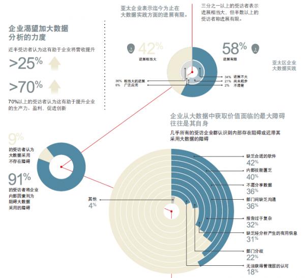 若说2012年云计算被捧热的话,那么2013年大数据这股热风就吹的更劲了。然而,大数据给CEO们带来更多难题,例如它能给企业带来怎样的帮助,需要付出多高成本,怎样衡量投资回报率,及需多长时间才能看到成果。 “若不做大数据就不会有任何优势,但现在大数据的确存在一种炒作。”HDS高级副总裁兼亚太区总经理Neville Vincent在上周澳大利亚悉尼市举行的媒体会上这样表示。 在他看来,数据也是一种资产。他引用经济学人智库(EIU)发布的调查结果,几乎一半的企业认为大数据会带来25%以上的收入增幅,预计收入可能会增长到2500亿美元,其中香港和印度的增长走在前列。亚太地区的企业普遍对大数据的前景十分乐观,在调查中超过70%的企业认可大数据的价值,有效利用大数据也被视为一个关键的成功要素。 从行业角度看,很多行业的数据分析进展滞后,尤其是医疗保健、制药和生物技术产业,很多大型国有和私营医疗保健公司IT基础设施规模大但连接水平低,而且随着患者数据相关监管法规的不断出台,让这个行业普遍采用大数据变得更加困难了。尽管很多行业的数据分析进展缓慢,但电信和零售行业是两个例外,这两个行业在采用大数据方面取得了相当大的进展,较早采用的原因可能在于这两个行业已经积累了大量的客户数据,以各种方式用于日常的营销活动中。 Vincent强调说,大型公司要比中小企业获益更多,有半数的大型企业在大数据采用方面已走得很超前,特别是电信、快速消费品及金融服务这几个行业对于大数据最乐观。 尽管人们期望很高,企业也很渴望加大数据分析的力度,但是现实却是大数据实践方面的进展有限,采用比预期地慢,有半数的企业甚至毫无进展。尤其是在中国大陆,有47%的企业还没有制定大数据战略,而且从总体来看,亚太地区的企业在大数据战略方面要落后于欧洲。为什么会存在理想与现实之间的巨大反差?Vincent认为,技术不是首当其冲,企业自身因素却成为最大阻碍,尤其是企业的高级管理层也许并未感受到大数据的吸引力,而这主要是因为员工之间沟通不畅导致的,从而在大数据方面行动迟缓,此外还有缺少合适的软件、技能匮乏、不愿意分享数据等原因。 “大数据不仅属于技术范畴,现在也成为企业取得成功的重要因素,想要增加营业收入和创新力,就要把大数据当成一种资本资产。”这其中,企业的管理层应该担负起制定大数据战略的责任,尽快消除信息孤岛和改善内部沟通,特别是IT部门应该尽早地参与到业务决策中来。Vincent建议说:“中国企业若把大数据作为一种资产的话,会给他们带来更好的竞争优势和更高收入等。很多中国的大型企业有大数据分析的需要,例如一些国企和保险公司,同时也有一些中型公司,他们更需要高度定制的大数据服务。” 大数据无处不在,HDS亚太区首席技术官Adrian De Luca举例称,澳大利亚两大零售商Coles和Woolworths通过跟踪单个消费者的购物习惯来确定目标客户,新加坡政府则利用大数据提高专业人士创新数量,韩国SK电信公司计划发布2700万手机用户的使用模式数据,以便对商业区进行分析并提供专业化的服务。由此可见,大数据已开始在亚太地区的某些企业中开始被广泛应用。他特别提到了中国阿里巴巴的子公司余额宝,提供了便捷的随用随取存款服务,同时还可获得理财收益。通过对支付宝账户的分析,可以预测用户何时将资金转入或转出账户,从而管理流动性风险。 “阿里巴巴的余额宝是一个有趣的案例,阿里巴巴有在数据分析方面的愿景,因此从一个行业跨向另一个行业,这和传统金融服务的视角是不同的,也是一个利用大数据转型业务的很好的例子。”他在接受记者采访时这样表示。他认为,中国正在出现一些新兴城市的智能城市建设和发展,今后15年将会有超级城市的出现,这会给大数据带来很多机会。最后他预测,明年亚太地区将会出现5大技术趋势: 1、来自移动通信的非结构化数据爆炸增长 2、大数据在成熟市场进入落地阶段 3、不同国家想要成为亚洲数据中心的竞争达到白热化。 4、数据安全关注度达到最高点 5、云(如阿里云)触发IT部门角色的转型 从2010年HDS的路线图中开始纳入IT协作和基础设施构建,De Luca认为现在大数据采用的程度还很低,成熟市场中采用情况更多且有高竞争性的行业,有些国家对于大数据的采用程度步伐会快一些,若能跨越技能上的障碍即可将现有企业的整合部署经验复制到其他企业中。中大企业是HDS传统关注的市场重点,因此被作为HDS大数据战略的出发点。从调查结果看,大中型企业有充足的资源和市场活力,比中小企业更容易接受大数据,因此HDS选择电信和零售作为大数据市场的代表,在过去两到三年的大数据项目实施中,例如电信公司网络日志分析和零售数据分析,这让HDS能够接下来将这些经验复制到其他企业中。 提出大数据愿景之后,HDS依然保持整体战略规划,融合成为大数据和云(如阿里云)计算三步走路线,即第一步基础架构,第二步内容,第三部信息,信息云是HDS大数据战略的最后一个阶段,最终目标是让数据分析独立于应用和介质,并能够对混合的结构化数据和非结构化数据同时进行分析。 HDS通过融合平台提供云计算和大数据解决方案,其中包括计算、网络和存储,除了硬件基础架构之外,还包括像SAP微软的参考架构设计和虚拟桌面应用,这构成了大数据