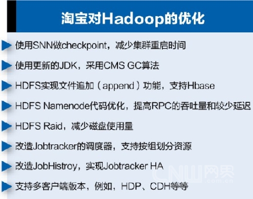 当下中国超大规模的单Master节点Hadoop集群在哪里?在淘宝。据悉,淘宝Hadoop集群拥有2860个节点,清一色基于英特尔处理器的x86服务器,其总存储容量50PB,实际使用容量超过40PB,日均作业数高达15万,为淘宝网的日常运营做出了关键支撑。对了,它还有一个很美丽的名字:“云梯”。近日,《网络世界》记者有幸采访到了阿里集团技术共享平台核心系统研发部海量数据技术专家罗李。作为淘宝“云梯”集群元老级创建者,及目前的负责人,他详细讲解了Hadoop在淘宝的应用与发展。 “云梯”的前世今生 “在2008年之前,淘宝内部一些业务团队,纷纷搭建了自己的Hadoop集群,但规模都很小,出了问题也都各自解决。”罗李说,“考虑到淘宝的业务确实对分布式计算系统有需要,再加上这种分散模式小集群的资源利用率不高,整个集团就决定建立一个统一的、大的分布式计算集群,为各业务线服务。” 阿里集团技术共享平台核心系统研发部海量数据技术专家 罗李 至于为什么选择Hadoop,罗李表示,当时能够达到商用水准的分布式计算技术也只有Hadoop。不过,他说:“当时整个淘宝并没有一个对Hadoop内核真正了解的人,后来是抽调了雅虎中国的核心技术人员,在2008年10月成立了专门团队。”“2008年我也是刚进淘宝,就直接被分配到这个团队,那时整个团队包括我才四个人。到2009年,我们的‘云梯’集群刚搭起来的时候,才300台规模。”罗李告诉记者。短短不过四年时间,“云梯”集群已扩张到近2900台规模,成为中国规模最大的单Master节点Hadoop集群。而伴随“云梯”集群成长的罗李,也成为了中国当下为数不多的、真正精通Hadoop的高级技术人才。 Hadoop在淘宝的发展 谈起“云梯”集群名字的由来,这竟是一个有几分“无心插柳柳成行”意味的故事。原来,出于安全性等多重考虑,当时阿里集团高层是决心自主研发一套有独立自主知识产权的分布式计算系统,即后来代号为“飞天”的大规模分布式计算系统。而罗李他们研发的这个基于开源Hadoop技术的集群,最初只是被定位成一个临时的、有过渡性质的系统,目的是让淘宝的业务人员提前熟悉和使用分布式计算系统,待“飞天”成熟后再将业务移植过来。 “我们一开始就知道我们是为他们(‘飞天’系统)铺路的,所以,既然他们叫‘飞天’,那我们就叫‘云梯’好了,隐含奉献的意思。”罗李说。只是,世事难料,大家都没有想到,四年后的今天大数据和Hadoop会如此之火,发展前景堪称一片光明,而淘宝凭借“云梯”集群也成为该技术领域的应用先锋。当然,阿里集团一直在坚持研发“飞天”集群,并取得了阶段性的成果。因此,在阿里集团内部,其实是“飞天”和“云梯”两大分布式计算系统并立的局面。 在应用中发展 从2009年的300台发展到目前2860台,这绝不只是一个机器简单堆叠的过程,而是耗费了淘宝研发人员无数的智慧与汗水。Hadoop技术本身在淘宝也获得了长足的发展。淘宝对Hadoop进行深度重构的最重要一次实践,当属该公司根据自身的业务需求,开发了自己的Hadoop分支——ADFS。据介绍,ADFS主要解决的是HDFS NameNode在设计上存在单点故障、内存瓶颈(因为所有的数据都是存入内存,长期以往,NameNode必将遭遇内存扩展瓶颈),以及集群重启时间过长,期间无法对集群进行写操作等问题。 而ADFS原理简单地说就是将非热点数据存入“数据库”,而非NameNode的内存。罗李说:“由于数据存放在数据库里,只要数据库‘不挂’就没有问题,NameNode的单点故障问题由此解决,同时也一并解决了内存瓶颈。系统升级不需要再停机,重启时间也由原来的一两个小时缩短到5分钟之内。总之,ADFS能提供10亿文件/目录的管理能力,其稳定性、性能和可维护性不输于甚至优于现有系统。”此外,值得一提的是,淘宝已经将ADFS开源在GitHub之上。 另一大改进,就是为减少磁盘使用量而实施了HDFS Raid技术。“HDFS出于可靠性考虑,都是将一份数据存成三份,这意味着1GB的数据占用了3GB的存储容量,可靠性是有了,但是经济性并不好。HDFS Raid就相当于Raid 10,原来1GB的数据所需要的空间从原来的3GB降到2.4GB,对我们来讲,就是上百万资金的节省,而可靠性却并没有丧失。”罗李说。不过,罗李表示,HDFS Raid技术来源于Facebook,他们是在Facebook提供的版本上做了些改进。 此外,还一个无法被描述成“项目”的改进就是持续不断地“优化”。“虽然Hadoop的优势之一就是不够了即可加机器,但是加机器意味着更大的存储容量、更大的计算需求和更大的网络流量,对主节点都会带来新的压力,因此,每次在扩展之前,我们都要对系统进行评估,都需要优化代码。”罗李说。 罗李颇为骄傲地告诉记者,由于不断地对Hadoop内核进行优化,淘宝版本的Hadoop在性能上“比一些社区的Hadoop版本高出30%~50%”。“毕竟,我们这么大的规模作支撑。因为系统的性能瓶颈只有在一定规模下才能暴露,而我们甚至将Java内核的漏洞都跑出来了。”罗李说。不过,罗李坦承,自从今年七月份新的“云梯”版本上线之后,他们发现通过优化代码提高系统性能的空间越来越小了。“所以,我们开始和运维团队一起合作,打算去从硬件层面下手,例如购买更高性能的CPU、闪存、万兆网卡等。事实上,我们现在最紧缺的资源就是CPU和磁盘。”他说。 同时,罗李指出,对很多公司而言,在规模不是特别大的情况下,通过购买更强劲的硬件来提高