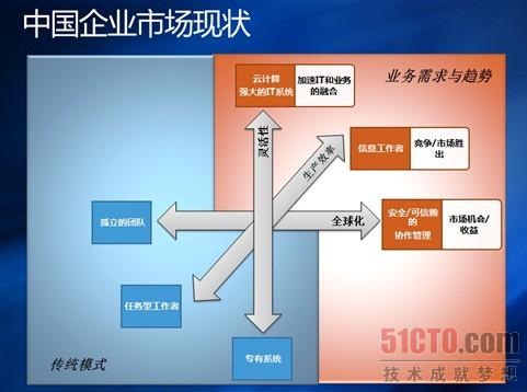 微软首席运营官专访:如何成功实现企业变革 我们都身处变革的大潮当中,面对这快速变化的环境,企业变革更加意味着如何充分的运用智慧来改善自己的生存条件。企业需要更好的对资源配置进行规划,对未来市场的变化做出合理的预期。变革的过程一定会遇到挑战和风险,因为它很可能会远远超越提高生产效率的层面。 根据分析机构预测,在未来12个月中国的软件市场将会呈现7%-8%的增长率,硬件、软件包括服务在内的规模将会超过60亿美金。“这样一个大的市场是非常诱人的,但是,我认为未来的中国商业软件市场将会变得更加复杂”,微软大中华区首席运营官范明轩在接受51CTO记者专访时谈到:“中国政府一系列的刺激政策,希望能够拉动本土自主创新的软件行业发展,这对来自国外的软件企业自然是一股有力的竞争力量,但这也是一个很好的机会,因为重视自主创新的市场,必须要首先培养一个尊重知识产权的环境,这对微软也是有好处的。因此谈到企业变革,对于微软自身而言也是至关重要的。” 在这个过程中,IT会充当一个什么样的角色,这是我们一直在探索的问题。“在中国企业市场的背景下,仍然有大部分的IT建设处于传统模式之下,分布着孤立的团队、任务型的工作者和大量的专用系统”,范明轩认为:“企业向前发展的过程中,云计算、高效的信息工作者和安全可信赖的协作管理,这三个方面是IT需要为企业提供的。这意味着如何从图中的左下方向右上方进行变革。” 确保IT支持企业获得成功有以下三点: 第一是如何能够从现有的单个的专用系统向IT和业务融合的方向、云计算来进行变革; 第二,如何让只在狭小工作空间工作的孤立的团队变成协同工作,更好的适应业务需求适应市场变化。 第三,如何从任务工作者转变为信息工作者; 商业智能 毫无疑问,数据是企业的核心价值。而且很多的企业内部,他们的数据都处于结构纷繁复杂的状态,数据信息以不同的格式散落在IT系统的各个角落。怎样统一数据帮助决策者对外界的变化迅速作出正确的回应,成为企业变革的另一大挑战。“其实企业的诉求描述出来很简单,就是在适当的时候,为适当的人提供适当的信息,使得他们做出适当的决策”,范明轩说:“达到这个目标,从前的方法是决策人员看很多不同的报表,跟很多不同的人开会,而现在我们运用商业智能的解决方案将数据收集起来,进行挖掘和分析,用体验非常好的前端界面展示出来,既保证了后台的海量数据,又确保可以快速做出响应。” 微软早在SQL Server 7.0的时代就已经具备了商业智能的基本功能。强调要真正做好商业智能必须是端到端的整合,还提供对数据进行多维分析(OLAP)的平台。每一个企业中的数据都是在自身业务流程的基础之上进行收集的,所以存在很多种不同的数据存储原理。微软利用平台技术的优势,将后台中进行数据抽取、数据挖掘、数据清洗等环节封装起来,开放给前端的是用Excel进行展示。“所以对于不同架构下的应用系统,我们都能够统一的将数据收集起来进行分析”,范明轩说:“同时,这些数据的背后是同业务系统关联在一起的。业务系统的数据记录有什么变化,BI也可以做到动态的变化,也就是说,决策者看到的永远是第一时刻的信息。” 在中国我们看到很多企业都是业务至上,CEO要求不断的追逐企业利润的最大化。在这种情况下,产生了许多不同的业务系统在各自实现着各自的功能。但是,从CIO的角度来考虑,他要为企业提供适当的服务,以确保业务能够持续的发展,同时,还有另外一个职责就是要推动CEO来思考,什么是未来可以做的事情。IT不仅仅是支持业务的发展,还要指引业务的发展方向,帮助业务实现创新。 范明轩认为:“IT与业务之间变得越来越紧密,从一个企业内部IT发展的成熟度来看,重中之重是要搭建一个强大的水平的基础架构,将这些单独的业务系统在水平方向上联系起来。如果企业能够有这样的IT基础架构,那很多工作实现起来就会更得心应手,IT系统对业务的反应速度也会变得更加灵敏、更有价值。” 云计算 从大型主机、服务器、个人电脑到互联网,现在进入第五代——云计算。把所有的计算应用和信息资源都用互联网连接起来,供个人和企业用户随时访问、分享、管理和使用,相关的应用和资源可以通过全球任何一个服务器和数据中心来获取。云计算开始成为一种全球IT产业共同应和的、主流的声音。“我们现在处在一个云时代的开端,这个时代是以一个渐进的、过渡的方式来实现,并不是一夜之间就形成的”,范明轩谈到:“它能够充分的利用现在已有的资源和工作来实现企业的目标,云平台最终会同PC一样,让成千上万的第三方开发人员开发出丰富的应用与新颖的服务。” “中国企业级的客户对私有云有着很大的需求”,范明轩说:“这样他们会减少在安全方面的顾虑,当一家企业迈向私有云之前,通常做的第一步工作是虚拟化,所以某种程度上虚拟化是一家企业准备向私有云过渡的一种方法。因此目前在中国市场虚拟化有很大的需求,微软虚拟化技术实现企业端到端的解决方案非常丰富,而且会带一些国内的客户到国外进行成功案例的考察,用具有前瞻性的思维帮助客户,引领他们制定向着私有云发展相关的规划。”
