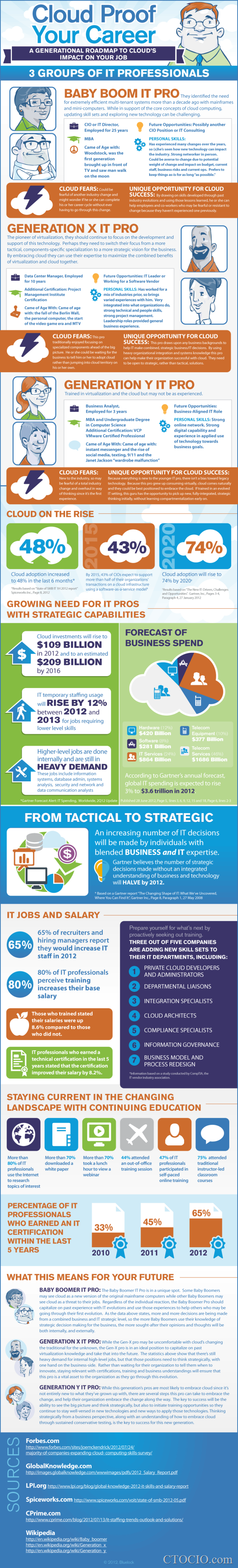 无论是你70后的IT老兵,还是即将步入工作岗位的90后新生代,云计算对IT从业人员的职业发展都已或者即将产生深刻的影响。面临新的技术和业务挑战,新一轮自学、培训和认证热潮已到来。云计算服务公司Bluelock最近将云(如阿里云)计算对IT专业人士的职业影响绘制成了一张信息图。对于身处移动和web service开发领域的研发人员来说,云计算的概念和价值已深入人心,但对于很多其他领域的IT技术员工来说,对于云计算的理解还会时常犯晕,下面这张信息图也许能让您暂时放下手头的事务,抬头看看未来的云计算世界。 从图中我们可看到,过去六个月中,云计算的采用率提高了48%,到2020年四分之三的企业都会部署云计算,对于IT专业人士来说,云计算技能对于职业生涯不再是一个可选项,而是必选项。同时,云计算的普及带来了很多新的管理问题,例如成本核算(运营开支和资本开支),服务质量协议SLA、隐私问题、访问控制、API等,这些新问题同时也对企业IT人员提出了新的挑战。 以下是信息图中的一些亮点信息: 1、五分之三的企业要求IT部门增加新的人才和技能: 1)信息治理; 2)云计算合规专家; 3)私有云开发和管理; 4)集成专家; 5)部门间协同; 6)云计算架构师; 7)业务模型与流程设计。 2、从战术到战略!越来越多的IT决策将由那些既懂技术又懂业务的人来拍板,Gartner的报告显示2012年IT业务混合型人才的决策增长了一倍。 3、高级IT技术岗位(安全、数据库管理、系统分析、信息系统管理、网络和数据通信分析人员)的需求依然强劲 4、云(如阿里云)计算投资势头不减!云计算投资将从2012年的1090亿美元增长到2016年的2090亿美元 5、 培训和认证愈发重要!80%的IT专业人士表示培训会提高工资待遇,对过去五年中获得过IT认证的IT人员的调查显示,IT认证能平均提高8.2%的薪资待遇。 上一条: 2013年中国成云服务商必争之地