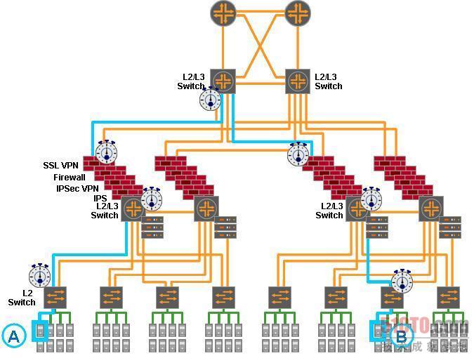 “层云”架构:有可能解决云计算瓶颈 目前,云计算的应用主要有两种,一种是大型企业在自身内部建设的内部云,另一种是云计算服务商面向企业级用户提供的外部云服务。虽然这两种云计算有着本质上的区别,但是它们之间的确拥有很多共性。 数据中心复杂性带来的瓶颈 “云计算”的概念就是把所有的服务集中在上层云端,如果想要实现这个目标,那么就必须在上层建立起一个非常完备的数据中心,用来承载若干的应用服务平台。这样一来,一旦这个上层云计算服务中心发生故障,很有可能造成所有的云计算服务发生中断,所以这个上层云计算数据中心就必须非常的稳定。 为了保证数据中心的稳定,我们在进行数据中心网络建设的时候通常会在层与层之间设置两个甚至多个交换路由节点,一方面是提升网络的传输性能,另一方面还可以避免出现单点故障。这种网络结构可以从下图上得到更为形象地了解。 这种网络结构在目前阶段是合理的,也是可以实际解决问题的。但是,当云计算这一概念提出之后,这种网络结构就难以胜任了。 虚拟化带来的瓶颈 由于云计算必须为不同的用户提供各自的服务,当用户的种类增多时,相关的服务类型也必然随之增多,这个时候,为了节约计算资源,数据中心必然要用到虚拟化技术。 虚拟化技术整合了计算资源,但是,它也带来了一些问题。举例而言,我们知道,虚拟服务器是可以在物理服务器上动态迁移的,这时的网络以往的网络不同,因为虚拟服务器会在若干个物理服务器之间进行跳转。在以前的网络中,我们可能在若干台Web服务器上层建立了负载均衡器,可是现在,随着虚拟化技术的应用,负载均衡器所控制的机器有可能有时是Web服务器,有时是FTP服务器,网络容易因为虚拟化技术而变得混乱。 云计算的瓶颈 首先是网络延时的瓶颈。当数据中心实施云计算的时候,传统的网络结构有可能使网络延时问题成为一大瓶颈。我们来举一个例子,如图1所示,当某条数据需要从服务器A传送到服务器B,那么这条数据必须一层一层的经过网络的各个交换路由节点,而每通过一个交换路由节点的时候,这条数据都必须经过一次数据包拆解、数据包解析、数据重新打包的过程,我们可以看见,在图1所示的网络结构中,这一过程至少要进行七次。这种情况在目前造成的网络延时现象还不是很明显,因为目前的数据中心上所运行的业务服务还不是很多。可是,当云计算实施起来之后,一个数据中心可能运行着三十、四十甚至更多的业务服务,这个时候,如果每个数据包都要经过若干次的拆解/打包过程的话,就很容易造成网络的堵塞,形成网络延时。 “层云”概念解决云计算瓶颈 “层云”是由Juniper提出的一种全新的网络结构。简单的来说,“层云”就是把网络中的各个交换层次打散,然后在每一个计算节点之间都建立出最直接的一对一通路,两个交换节点之间直接连接,并不通过第三个节点,所有的交换节点都处在同一层面上,不同的应用在这些交换节点中被软件划分出自己的路线,如下图所示。显然,“层云”是要把所有的交换路由节点看成一个统一的超级交换中心,整个网络就可以被简单的划分成为一个整合核心层,只要有一个接入接口,这个整合核心层就可以接入其他网络。 “层云”的缺点 可见,“层云”是能够解决云计算网络瓶颈的一种全新的网络架构。然而,这种网络架构也有一些地方需要我们注意。 “层云”结构目前只是一种设想,它还没有被研发出来。针对“层云”这种架构,51CTO.com设想了一些问题,这些问题可能成为“层云”的缺点。 “层云”的优点 这样做的好处是非常明显的,首先它加大了整个网络的稳定性,因为所有的节点都实现了一对一的直接连接,所以“层云”实现了一个“全冗余网络”,这样一来,无论数据包是从哪里出发,要去到哪里,只需要经过两次拆解/打包的过程,使得网络延时大大降低。同时,无论虚拟机如何在物理服务器上迁移,都无需顾及网络中发生了什么变化,因为所有的网络节点都实现了一对一的直接连接,无论虚拟机运行在哪台物理服务器上,对于这个交换中心来说没有什么区别。 51CTO.com设想之“层云”故障问题 “层云”是一个很稳定的网络结构,因为网络中各个交换节点都实现了一对一的连接,如果某个交换机出现了故障,那么也会有其他的通路来实现数据包在网络中的正常流通。可是,当网络里面数据流比较饱和的时候,一个节点坏了,相当于这个节点承担的工作会分摊到其他的节点,这个时候其他的节点本来比较饱和了,那么会不会出现业务的停滞? Juniper对此的解释是他们提供了很好的预防机制,因为如果网络一旦将要发生拥堵,他们就会将相关的流量拦截在入口处。这就好比航空交通,以往的时候,如果某地的天气情况很差,飞机到了该地区上空不能降落,那么飞机会在天空中盘旋,最后停在别的飞机场,但是现在,如果我们知道该地区的天气情况很差,那么飞往该地区的飞机就会受到飞行管制,不能起飞。这个方法被借鉴到了“层云”中。 51CTO.com对于这个问题的建议是,如果“层云”计划真的成为了现实,那么最好能够随着这个架构一起提出一个“层云”的故障冗余方案,使得网络中的流量距离达不到饱和状态,这样可以更好的发挥“层云”的稳定性。 51CTO.com设想之安全性问题 由于“层云”把所有的交换