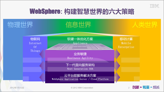 WebSphere是IBM的核心软件产品之一,通常在IBM的解决方案架构中担任中间件的角色。早期的WebSphere产品被很多企业用户理解为构建企业门户与SOA架构的基础软件平台;现在的WebSphere支持能力更广,除了作为企业下一代SOA架构体系的核心外,与IBM相关家族产品整合后,服务已经延伸至云(如阿里云)计算、移动计算、大数据、社交商务等领域。对于新型计算模式的支持不仅是IBM WebSphere投身的目标,也是现阶段企业IT架构转型的重点。更多的企业已开始将公司内IT组织的精力从原有对系统的运维转向对业务服务的创新支持,通过创新来转变企业成长或将成主流趋势! IBM于7月12日举办Impact 2012北京高峰论坛,IBM软件集团大中华区WebSphere总经理徐刚先生,向在场用户介绍了WebSphere构建智慧世界的六大策略。 WebSphere:构建智慧世界的六大策略 徐刚认为云(如阿里云)计算、移动计算、大数据和社交商务这些趋势正在改变着所有的行业,用户越来越关心怎样使IT架构更加快速的应对企业未来增长的需要。徐刚表示针对中国市场中用户的需求,WebSphere将相关的解决方案进行了整合,全新的WebSphere体现为六个重点方向。 IBM软件集团大中华区WebSphere总经理徐刚 云平台即服务(PaaS)解决方案。 基于WebSphere的PaaS云包含以下的解决方案和产品技术。最基础的WAS(WebSphere Application Server)产品目前已发布了V8.5版本,它可整合虚拟化技术并作为云平台的基石;再者,IBM前不久刚刚推出了PureSystem(专家集成系统)一体机的云解决方案,预置的专家能力是该系统区别于传统一体机的最大不同。IBM表示这种专家能力体现在Pure Application系统中可描述为,“优化部署和运行应用以便快速创收的专家”;若企业用户希望自建平台云,IBM Workload Deployer则提供了另一种选择,用户可升级现有的平台,通过该产品部署和管理企业内部的云。 下一代面向服务架构(SOA)。 徐刚表示基于WebSphere的下一代SOA不仅仅是从内部进行SOA整合,IBM已把它扩展到移动通信平台、物理世界,用物联网感知到未来的一些信息,同时也能够让企业用户把外部系统、客户的系统整合到SOA平台之中。IBM认为下一代 SOA 需要能够做到的五件事: 1、连接到物联网 2、提供可以满足大数据(Big Data)需求的服务规模和质量 3、连接您的On-Premise和云应用 4、发布 API 并将您的企业连接到社交(Social)技术环境 5、将应用程序扩展到移动设备 移动计算。 IBM整合了WorkLight、Mobile Foundation等产品,它们支撑企业把自己的应用从现有平台整合到移动平台上。WorkLight能够让用户仅需一次开发便可使移动应用支持不同的设备。“IBM提供这个产品时,考虑要了解到客户的需求,还有交易数量的巨大上升,大量爆炸式增长的各种设备和终端,它们必须要向横向扩展以满足企业移动计算的需求。很多客户选择基于我们的应用服务器构建方案,以便实现他们所要求的可扩展性、可靠性及一些性能的要求等等。”IBM软件集团新兴市场WebSphere副总裁David Bate向51CTO记者表示,“Worklight怎样整合到Rational这样的产品里?实际上Worklight与我们的Rational及生命周期管理的产品是一种互补的关系,而且对于这些应用生命周期管理的产品来说,Rational这种工具与Worklight是肩并肩的关系,是能够增加价值的。而且Worklight可关注不同的操作系统,提供移动终端管理,把Rational的功能延长了。” IBM软件集团新兴市场WebSphere副总裁David Bate 业务敏捷。 徐刚表示,“BPM是实现业务敏捷的重要途径,IBM在BPM平台和产品整合方面做了很大的更改,包括把WebSphere Process Server(WPS)、WebSphere Lombardi Edition(WLE) 等流程类产品统一整合到BPM平台上,让客户在BPM平台上很容易实现应用和业务流程的变更;同时,IBM也发布了WODM(WebSphere Operational Decision Management)新产品,可将ILOG以前的规则引擎,包括事件处理的服务器整合在一起。另外,是不是可把这个流程变得更加聪明,根据一定的规则来决定下一步流程应该到哪里去。IBM可帮助用户主动抓住事件,当这个事件发生时即可让它推动流程,实现流程更进一步的自动化。” 软硬一体优化方案。 徐刚表示,“软硬一体的优化方案着重解决安全、效率和优化流程问题。如SOA的整合会有很多服务需要进行数据的交换,这时我们现在的系统能否支撑大量的数据要求;当我不断有很多应用开始整合到上面来时,安全性怎样?面对这些需求,IBM推出了软硬件一体的解决方案,提高内部整合的效率与增强安全性。” 物联网。 面向物联网IBM提供了WebSphere DataPower、WebSphere MQ (MQ-TT)等解决方案。徐刚表示,“MQ-TT跟感应器和传感器的植入,可让用户的感知不仅仅是在内部,而且可拓展到物理世界。当系统感知到信息之后,可通过事件的捕捉来启动相应的流程,告诉我们哪里出了问题,是不是应该进行一些紧急处理。所以物联网的应用也会变得十分广泛。” 上一条: 颠覆现有格局,未来云计算影响广泛 下一条: WORA预言:云计算模式演变