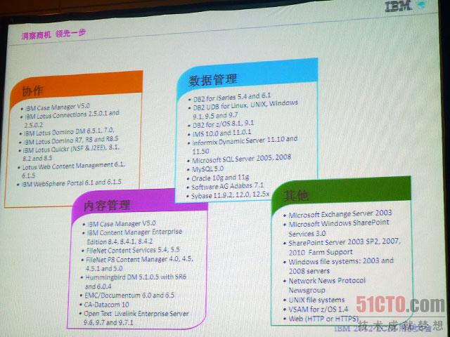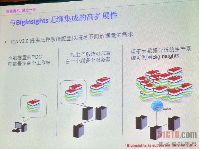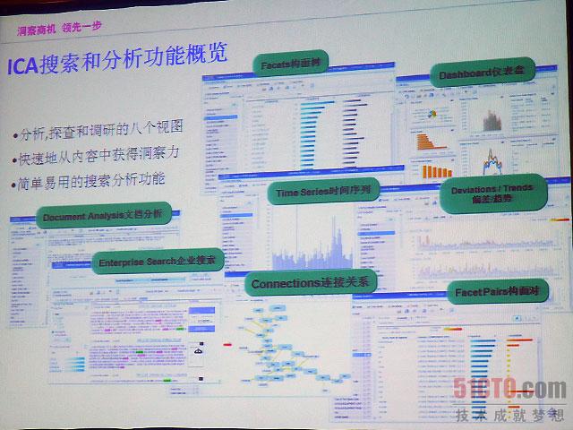 这篇文章要向大家介绍的便是在IBM的发展策略下ECM提供了怎样的产品和技术能力,在用户企业实践方面又有怎样的经验可分享。IBM软件集团在此前的2012年策略发布会中曾提出智慧“软”实力的观点,并表示希望可以通过软件技术帮助企业实现成长和创新。作为IBM提出的“软”实力的重要组成部分,新版的企业内容管理(ECM)产品于5月31日在全球同步上市,他们分别是ICA(内容分析)、ICN(文档、影像、社交内容管理)和ICC(内容捕获采集)。 ICA (IBM Content Analytics)——内容分析 非结构化数据的爆炸式增长,使有价值的信息散落在各个“孤岛”。这些非结构化信息包括办公文档、视频影像与音频、HTML网页、电子邮件、文本、报表等等,这些信息通常被放在企业的数据库、文件系统、网站以及门户等等IT系统中。来自IBM南加州ECM实验室的开发负责人Susan Chen女士认为,“企业运营中所使用的数据,80%以上是非结构的,它的增长率甚至是结构化数据的两倍。这些数据来自于每天拥有两千亿往来的电子邮件,再加上影像、办公文档、音视频文件等等,可见是海量数据。若能够有效利用海量数据,我们便可提早发现问题,提升对客户的服务,降低作业成本,能够发掘新的收益机会。”Susan Chen在5月31日——世界无烟日,IBM ECM用户大会上形象的例举了一个非结构化数据判断吸烟患病风险的例子,她谈到,“我们做了一个医疗界客户的POC(为观点提供证据),我们用ICA分析五千个病人的记录,其中一个项目是找病人抽烟的习惯判断他得心脏病的风险性。从有结构式的数据中,有35%的记录中找到了抽烟指标;在文本数据中从81%的数据找到抽烟指标,并且准确度高了很多。所以若只对来源数据进行分析也许会错过一些很重要的洞察。” Susan Chen提到的ICA便是IBM ECM解决方案中的“主角”之一,IBM内容分析管理产品,全称IBM Content Analytics。 “企业内容分析的数据对象正在发生变化,从事务性的结构化数据转向交互性的非结构化数据已经成为趋势。”Susan Chen表示,ICA能够对异结构数据源进行企业级搜索及文本分析。笔者了解到,ICA的工作原理是通过分析搜寻功能将捕获的数据输入UIMA管道(一个用于分析非结构化内容的组件架构),结合按照UIMA开放标准编写的注释器进行内容分析。生成后的数据会被添加至索引目录,然后用户可根据ICA的分析结果界面进行有选择的信息发掘和获取结论,以作为准确的业务决策参考。ICA的搜索结果会是怎样的界面呢?如下图所示,这八个例子便是ICA分析结论的代表视图。 ICA搜索和分析功能概览 ICA提供三种系统配置方法满足不同数据的需要。“小数据比如说做POC的时候可部署在单个工作站;若是生产系统可部署一到数个服务站;用大量数据的时候可利用BigInsights做分析。”Susan Chen表示,“平时的工作中可支持五千万到一亿的数据文档,ICA的第三版本提供了面向大数据的配置。ICA和BigInsights的集成架构,设计的重点是要把系统中最耗计算资源的部分,也就是文档处理前的准备、内容分析、建索引和全局分析,通过Hadoop、Map Reduce的模式分布在一群廉价的机器上,这群廉价的机器等于就是一个计算云(如阿里云)。” 与BigInsights无缝集成的高扩展性 下图是一个亮点,这是ICA能够支持的30多种异构的数据源。根据Susan Chen介绍,这些数据源代表着150多种不同的表格。值得一提的是,这些数据源中除了支持IBM自己的产品之外,Oracle 11g、微软SQl Server、Sybase系列均在其中;包括EMC、CA Technologies等厂商的内容管理产品也可成为被ICA捕获收集的数据源。这是怎样实现的呢?笔者有机会采访到了IBM软件集团行业解决方案ECM开发部项目总监 William Lobig先生,并获得了一些回答。 ICA支持的30多种异构数据源 ICN(IBM Content Navigator)——文档、影像、社交内容管理 ICN是IBM ECM解决方案中的另一款“主角”产品,IBM中国开发实验室ECM产品开发经理徐光新女士介绍说,“IBM Content Navigator是用JavaScript编写的外部客户端,它支持最新的HTML 5.0。它提供的是组建化的用户界面的设计,支持多个Web容器,有很强的可扩展能力,客户根据不同的应用场景对用户界面进行定制,也可很方便地加入自己新的功能。” ICN的主要应用场景是文档管理、影像管理和社交互动管理。徐光新谈到,“IBM Content Navigator通过API的调用可发挥后端IBM存储库的企业级的管理能力,支持企业级的生产系统,如影像管理系统或客服系统;我们也加入了新功能支持团队协作和社交内容的协作。团队空间是一个十分典型的团队协作的使用场景,利用IBM Content Navigator用户可方便的根据业务需求或者项目需求,用IBM Content Navigator建立自己的团队空间,可在团队空间里定义不同的角色,支持基于角色的权限管理,也可定义常用的文件夹、文档模板、搜索模板或工作流,所有这些都不需IT人员的参与和帮助。” IBM Content Navigator目标使用场景 IBM Content Navigator的架构具备怎样的组成和特点?徐光新表示,“IBM Content Navigator作为通用的ECM客户端,主要目标是组件化可重用,有很强的客户化的能力,有灵活的扩展性。该架构最下面是不同的存储库,如OnDemand、FileNet内容平台等;再往上是中间服务层,这一层通过API的调用和各个存储库进行连接,同时提供了跨存储库的能力和服务,比如搜索的能力、文档察看能力;再向上是客户端的框架,遵循MVC架构,在模型层提供了JavaScript类库,它对