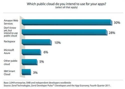 根据最新研究表明,作为一个相当不错的开发平台,今年公共云(如阿里云)将吸引越来越多的开发者在平台上进行开发。 在对Zend公司(一家PHP工具供应商)的3335名开发者进行关于他们今年将希望做什么工作的调查的时候,61%的开发者表示他们希望在项目中使用公共云。这61%的开发者中,有30%选择使用亚马逊的公共云服务,28%的人暂时还没确定会使用哪种公共云,10%会使用Rackspace公司的服务,6%使用微软的Azure,使用IBM智能云的为3%,使用其他公共云服务的占5%。就整体项目而言,高达66%的开发者表示今年将会在移动领域进行开发,即平板电脑、智能手机、和应用程序商店等方面。 41%的受访者表示,他们想要基于云计算的发展工作, 40%的受访者则表示他们看到大数据计算将在不久的将来进入他们的工作。这些云和大数据数字似乎对这两个主题的兴趣不是太高,但是“移动开发”是一个广义的术语,可列入云(如阿里云)计算的工作。近一半的受访者(48%)表示,他们将会在API上进行工作,45%的人则会在社交媒体上整合今年的工作。Zend于2011年11月对开发者进行了调查,并且计划制作了Zend Developer Pulse一年一度的活动。 上一条: 中国云经济雏形初显 四大趋势面面观 下一条: 云计算时代:虚拟化技术的发展历程